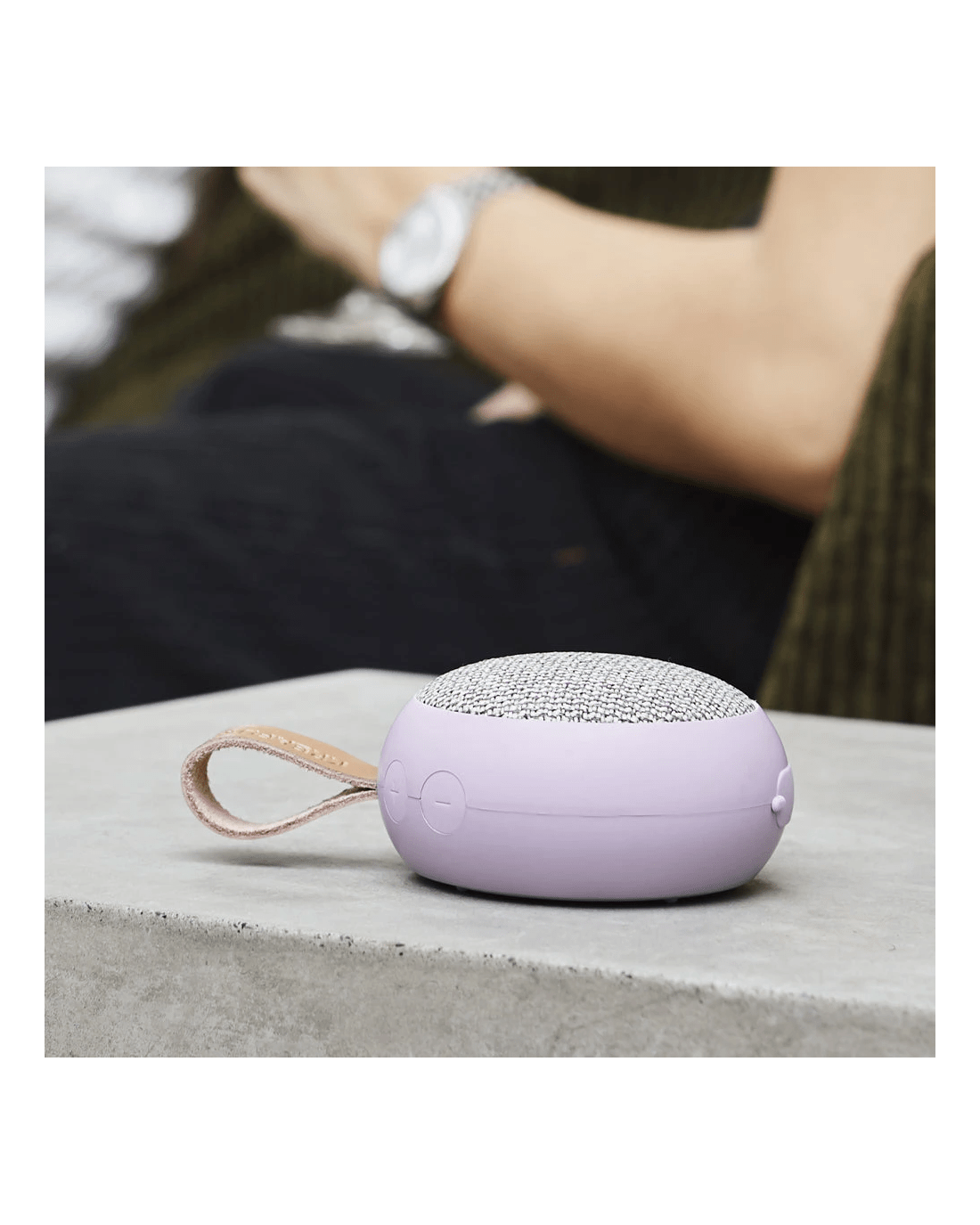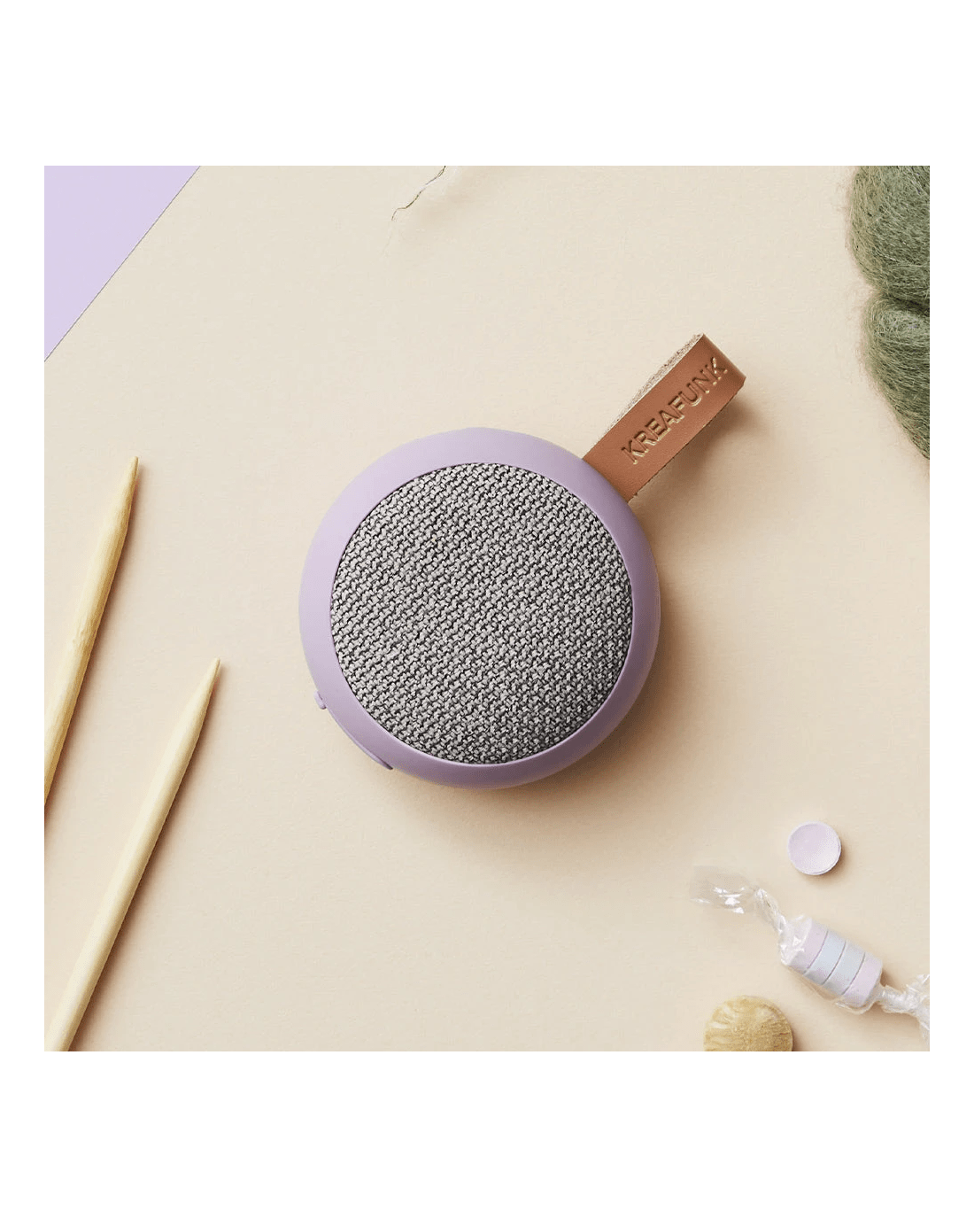Kreafunk Ago 2 Fabric Bluetooth Speaker - Calm Purple - Kreafunk Ago 2 Fabric Bluetooth Speaker - Dusty Green - aGO 2 fabric Compact Power, Refined Sound. Don't let its size fool you the aGO 2 fabric speaker delivers big performance in a small, stylish package. An evolution of our bestselling aGO, this upgraded version features enhanced, precision-tuned sound that's surprisingly powerful for its compact form.With smooth curves and a minimalist design, the aGO 2 fabric looks right at home in any space. Hang it on a hook, slip it into your bag or pocket, and bring your music wherever life takes you. Splash-resistant and durable, it's ideal for everything from beach days to bathroom playlists.Pair two speakers using Stereo Play for immersive stereo sound perfect for parties or just enhancing your everyday soundtrack.The speaker's textile front is crafted from 98% recycled plastic bottles, supplied by Gabriel, giving it a unique look with a sustainable edge.