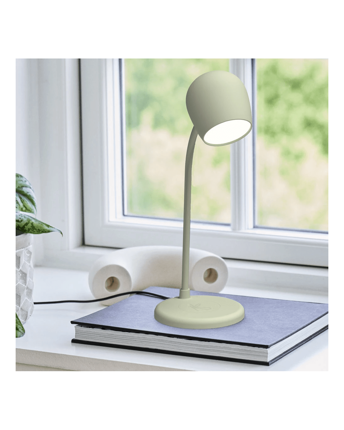 Kreafunk Ellie Lamp W/ Qi Charger And Bluetooth Speaker - Dusty Olive - Ellie Smart Lamp with Speaker & Wireless Charging.More than just a light, Ellie is a multifunctional companion that elevates your space. Combining ambient lighting, rich sound, and smart convenience, Ellie is designed to simplify and enhance your everyday moments.Versatile & Stylish. Whether it's your desk, bedside, or side table, Ellie fits seamlessly with its modern design and practical features. 3-in-1 Functionality.Lamp: Set the mood with three dimmable brightness levels. Speaker: Enjoy your favourite music via high-quality Bluetooth audio.Wireless Charging: Power up compatible phones, headphones, or speakers directly on its base.Smart ConvenienceTake hands-free calls with the built-in microphone ideal for multitasking at home or at work.