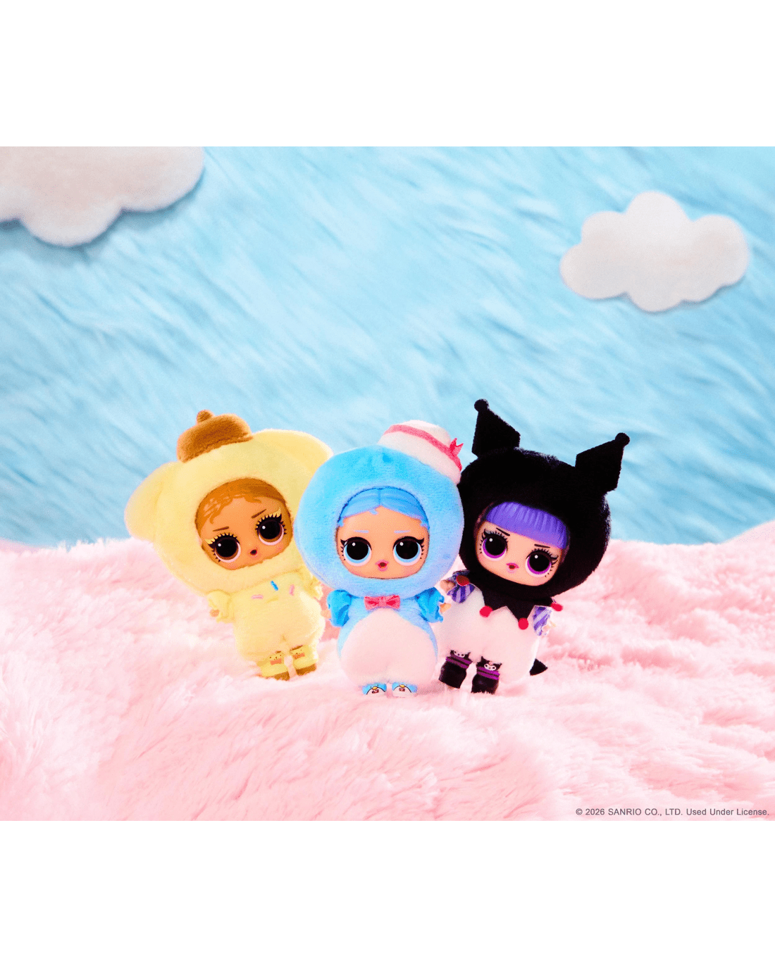 Matching L.O.L. Tot inside: Unbox the plush to reveal your matching L.O.L. Surprise Tot Doll styled to coordinate with her Sanrio™ friend!