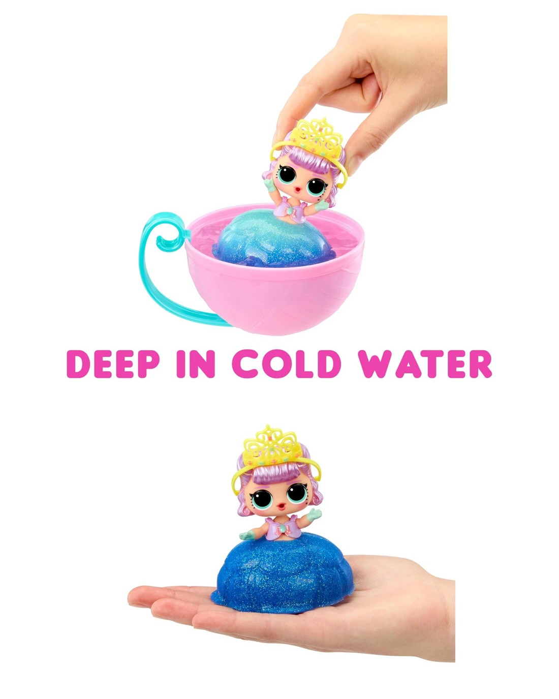 - Colour change feature: Dip your Tot’s princess dress into cold water to reveal a gorgeous colour change surprise!