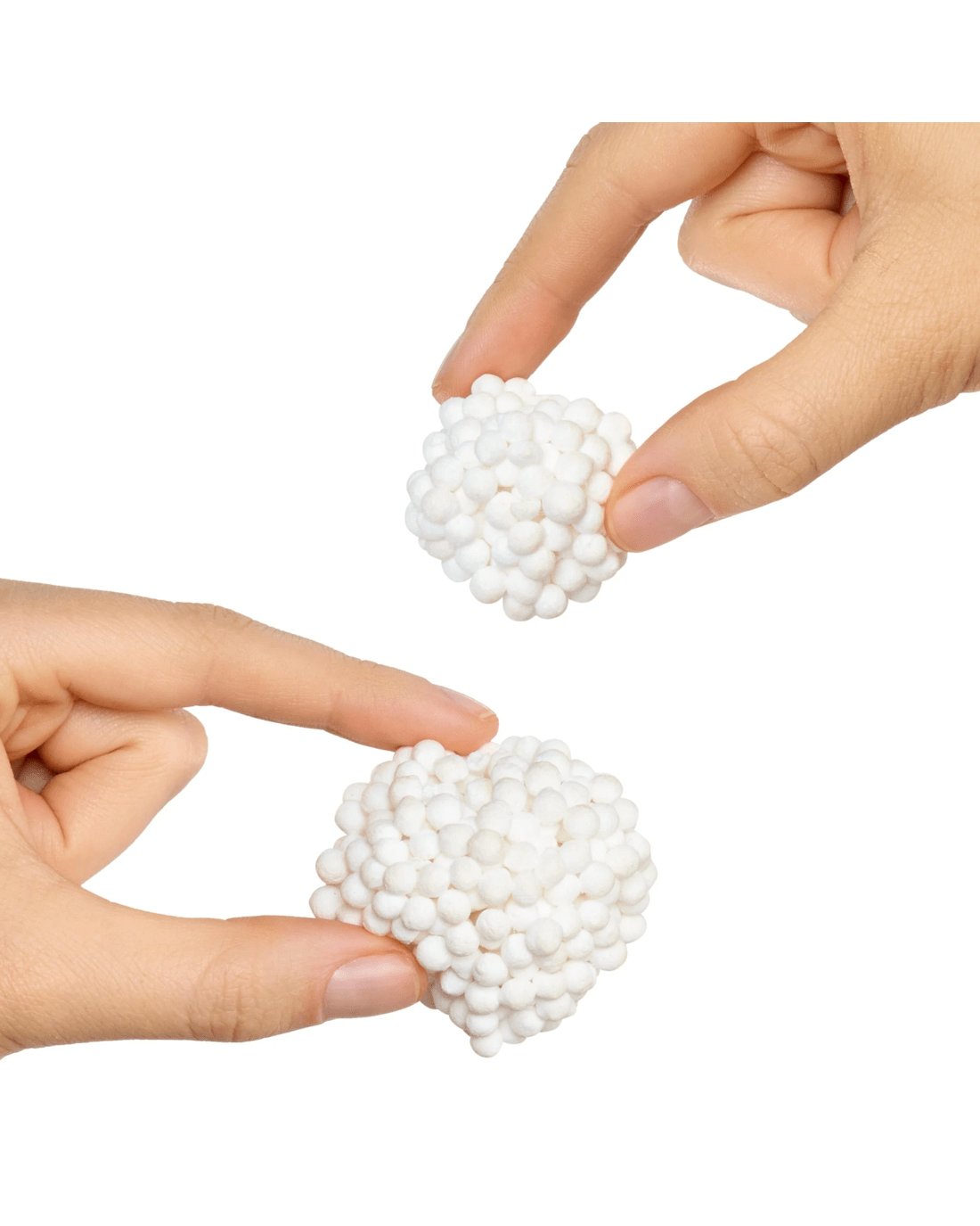 - Snowball feature! Comes with “snow balls” that stick together when clumped and can be pulled apart easily and then re-stuck together without any water or adhesive!