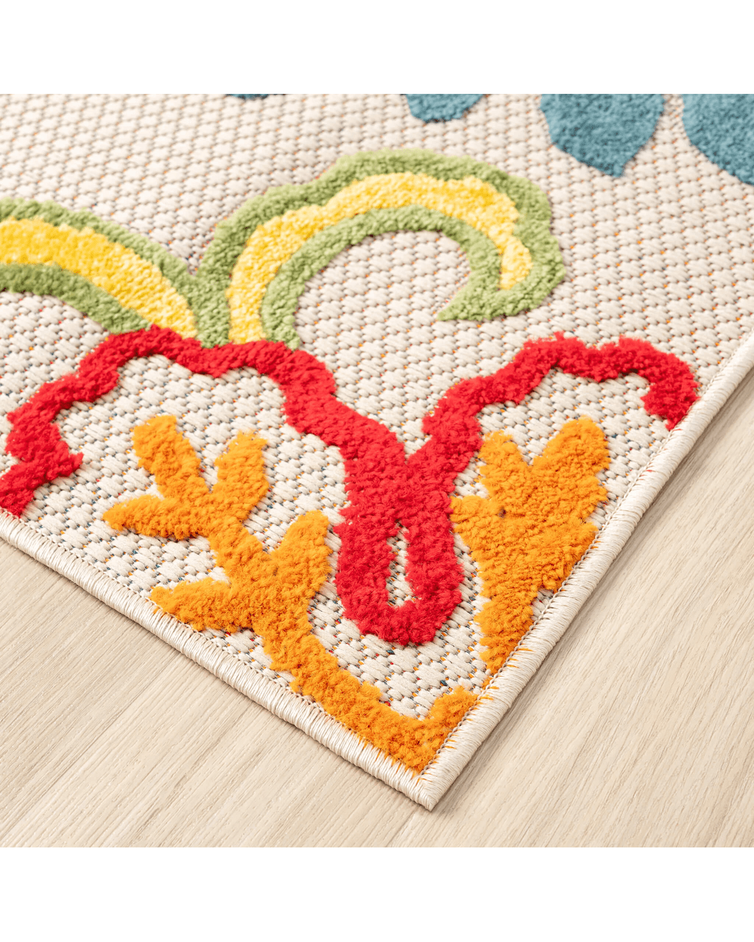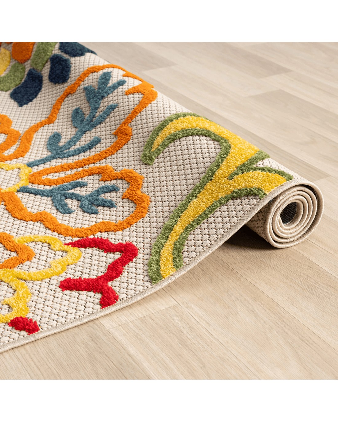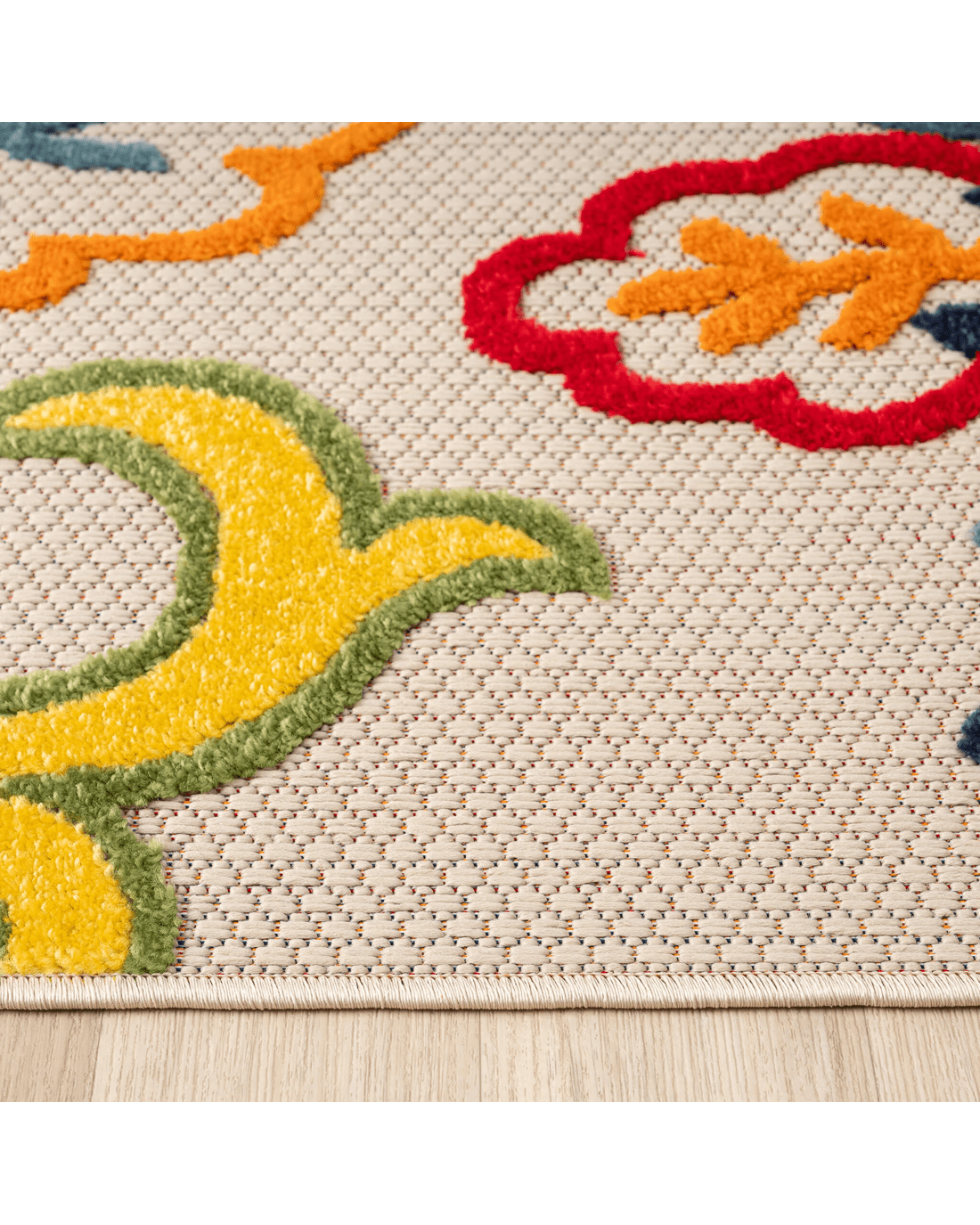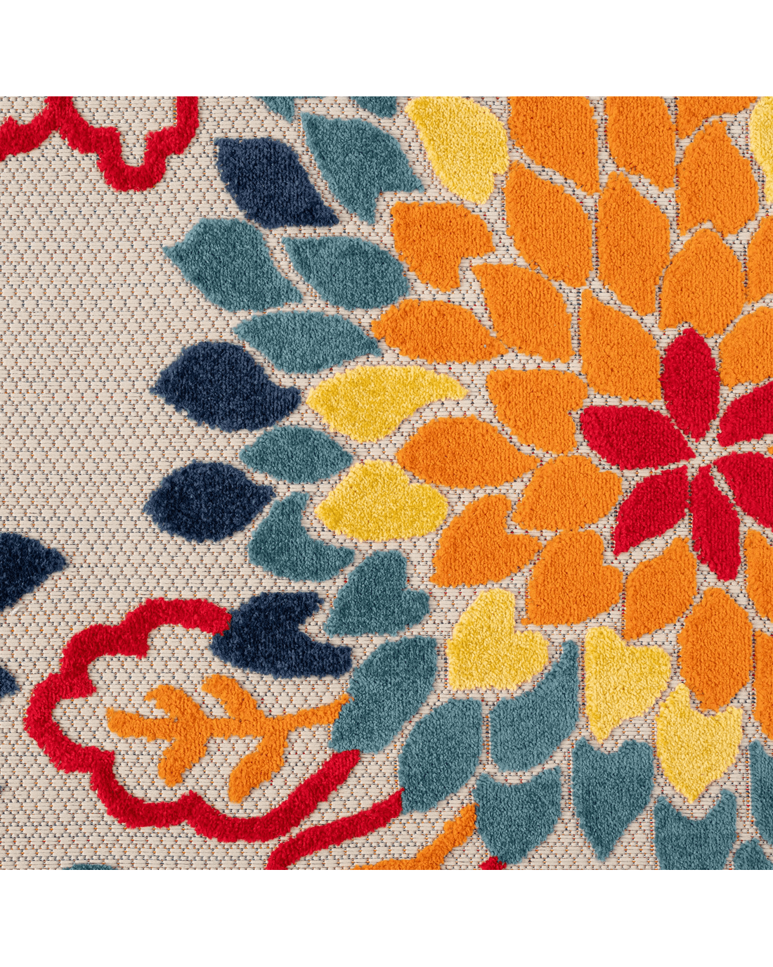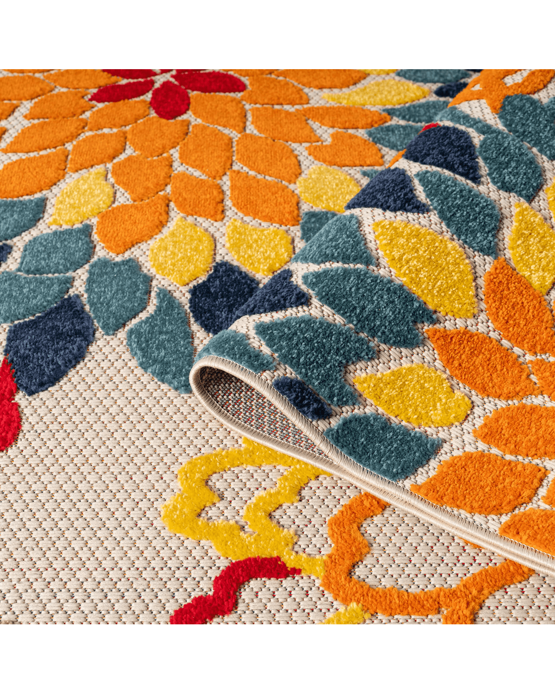 This colourful and happy indoor/outdoor collection has bold, floral patterns brought to life with a vivid, tropical colour palette, and is ideal for transforming mundane floor spaces to areas of rest and relaxation. The multi-textured, high&low polypropylene pile is shed-resistant and has anti-static properties. This collection is also suitable for outdoor use in covered patios, balconies, terraces, and courtyards with its woven latex base, and its durable construction is power loomed to high standards. Create your own tropical paradise in your home, both indoors and outdoors, with this luxuriant range!