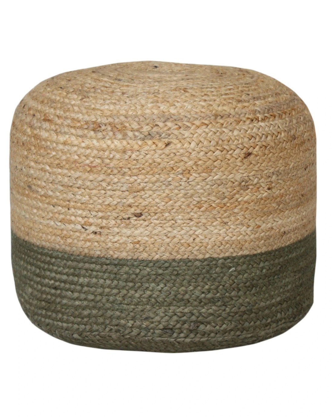 La Grace Home Ombre Hand Braided Jute Cotton Pouf Ottoman - Olive