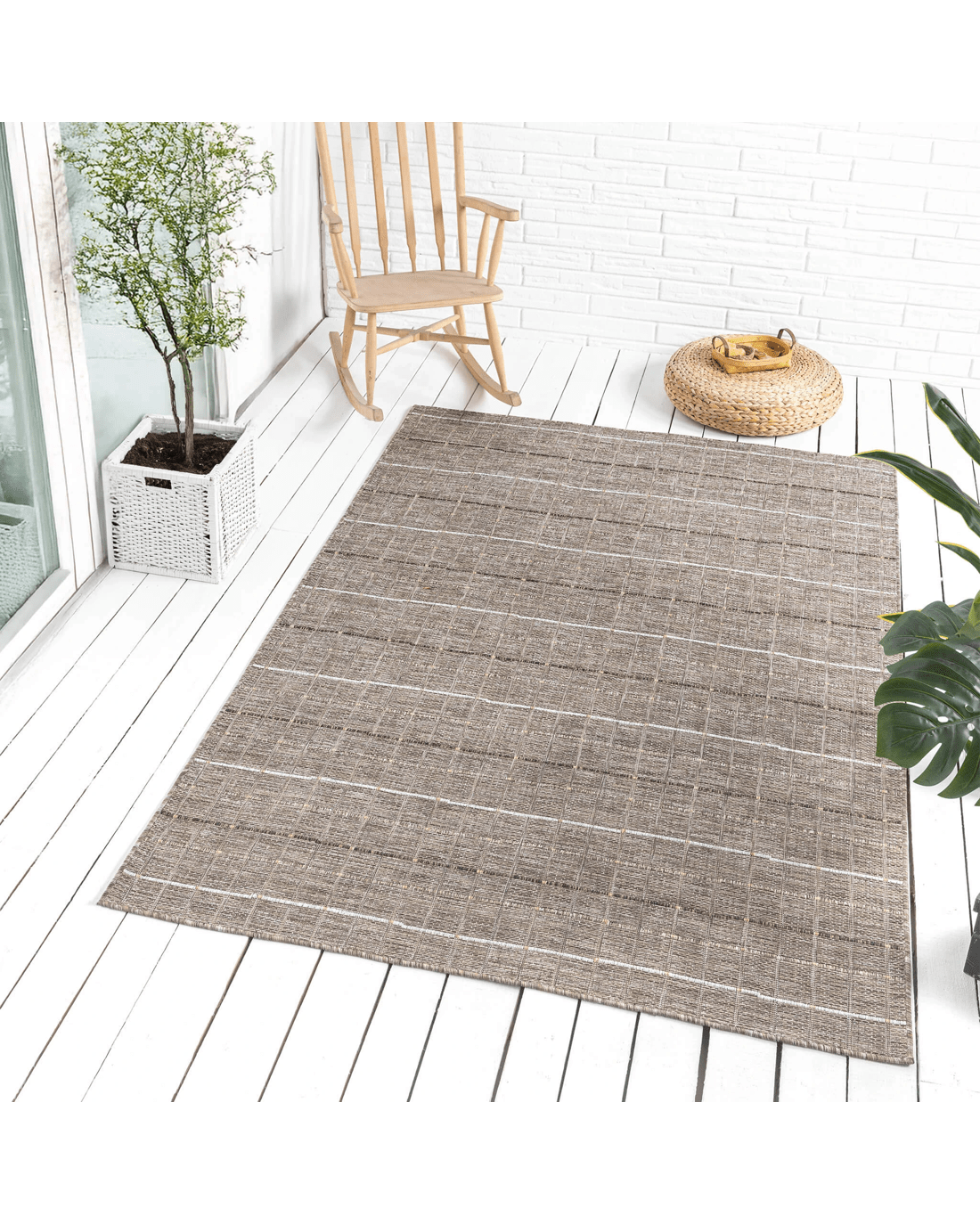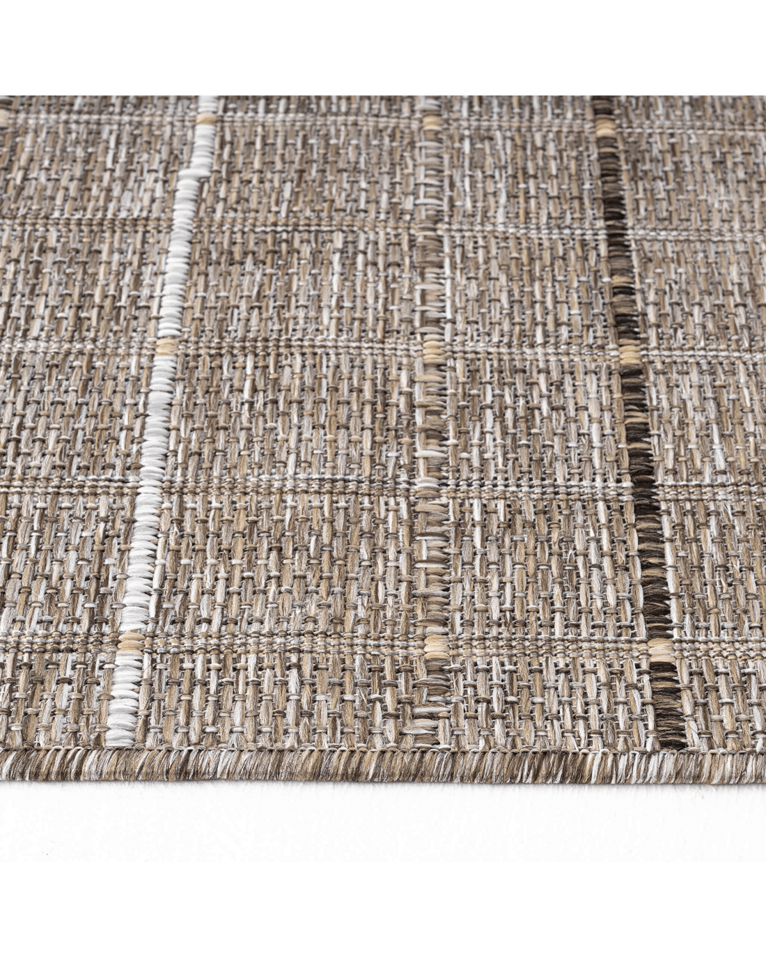 This flat-weave, indoor/outdoor collection has a subdued colour palette for versatility, and is power loomed from polypropylene with a water-resistant base. This budget-friendly range, while complementing interior spaces, is also suitable for outdoor use in covered patios, balconies, terraces, and courtyards. This highly decorative collection also has quality finishes including all-side binding, and contains shed-resistant and anti-static properties for easy maintenance.