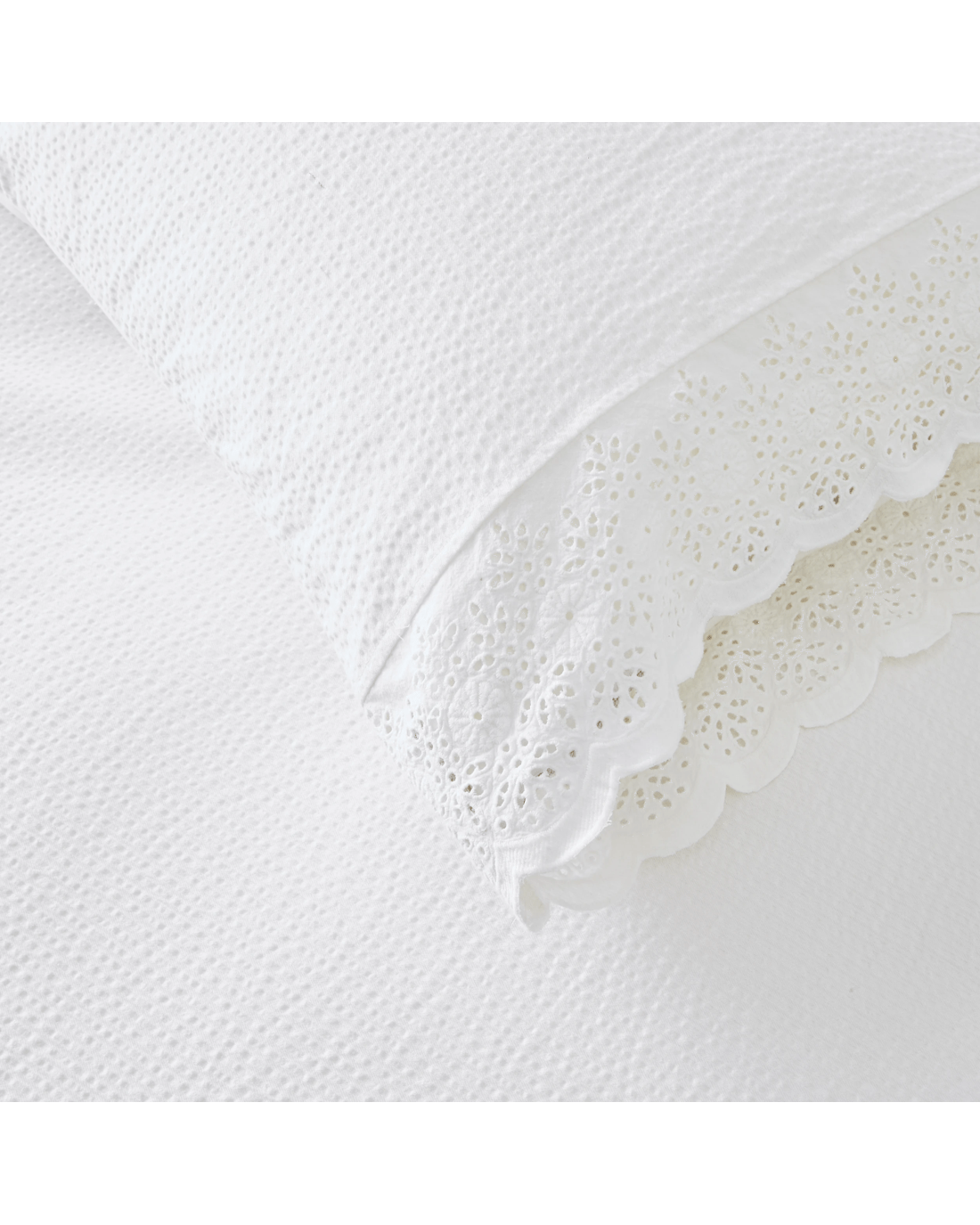 Lace Cotton Quilt Cover Set - Double Bed, White