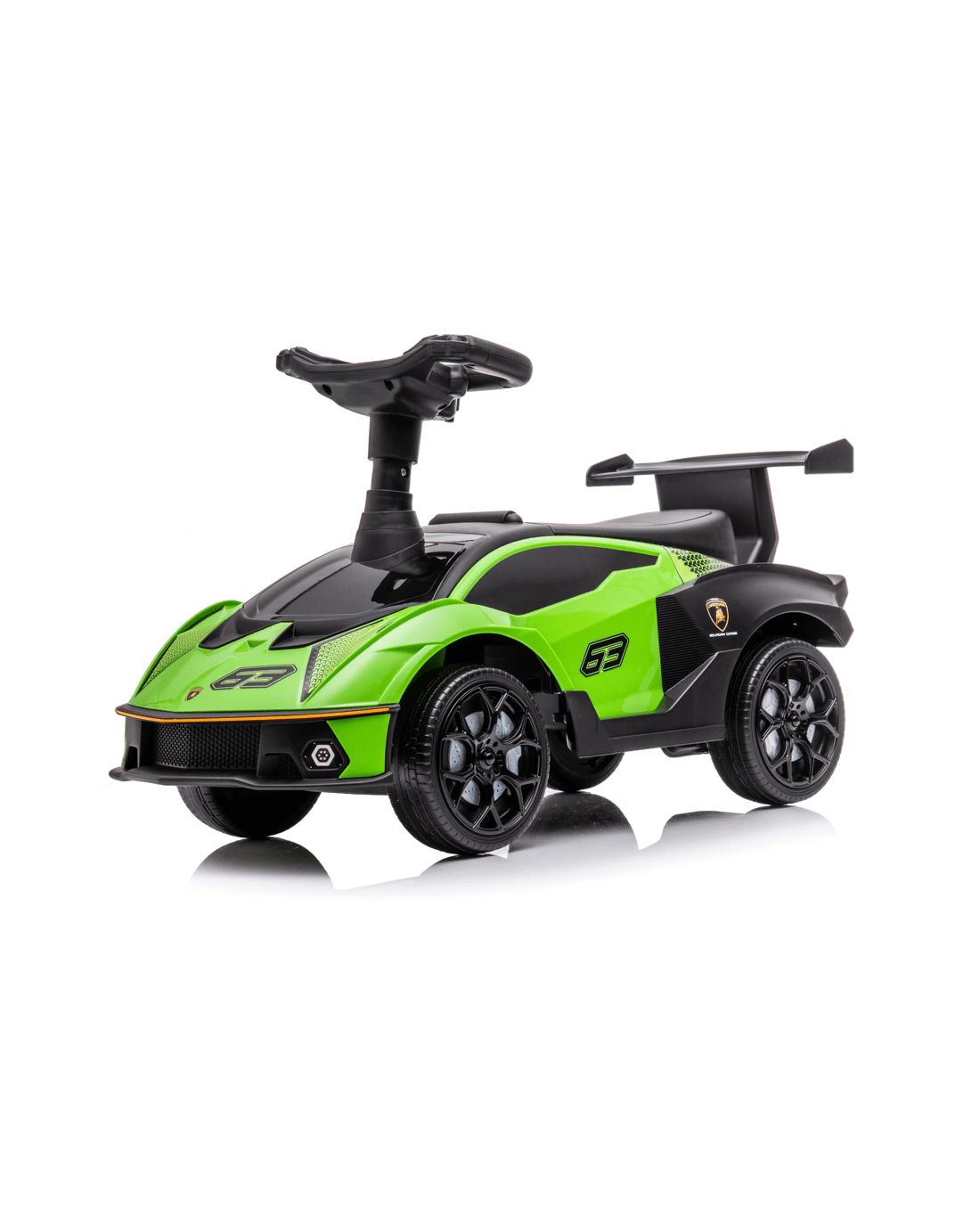 Ignite your child’s imagination with this eye-catching green Lamborghini foot to floor ride on. Designed for budding car enthusiasts, its low-set seat provides balance and peace of mind, while the easy-grip steering wheel invites little hands to take control. There’s even a fun horn to press and a clever space beneath the seat to store treasured items as they set off on their next adventure. Lightweight and perfect for both the living room and garden paths, it promises hours of energetic play. Watch as your little one develops confidence and coordination, creating joyful memories with every push. Treat your youngster to exhilarating playtime – start the fun today.