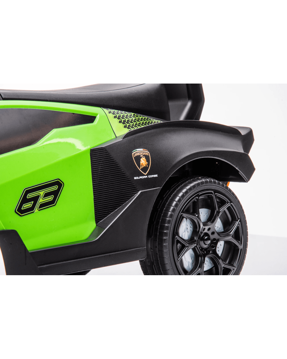 Ignite your child’s imagination with this eye-catching green Lamborghini foot to floor ride on. Designed for budding car enthusiasts, its low-set seat provides balance and peace of mind, while the easy-grip steering wheel invites little hands to take control. There’s even a fun horn to press and a clever space beneath the seat to store treasured items as they set off on their next adventure. Lightweight and perfect for both the living room and garden paths, it promises hours of energetic play. Watch as your little one develops confidence and coordination, creating joyful memories with every push. Treat your youngster to exhilarating playtime – start the fun today.
