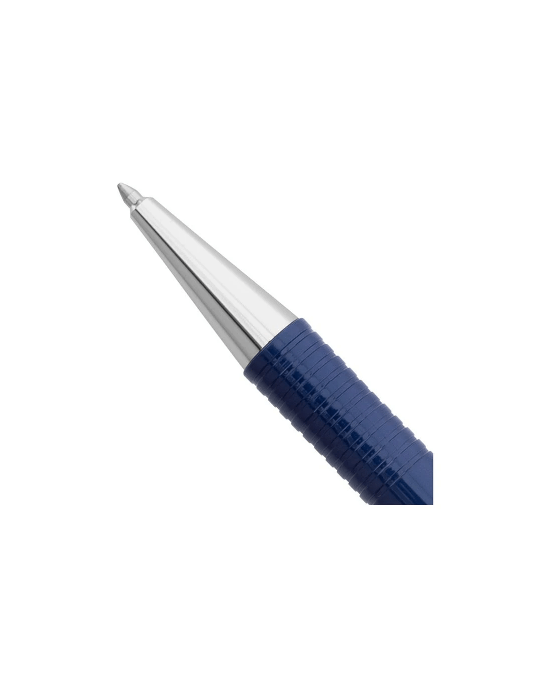 - This pen features a blue barrel and a black ink refill.
