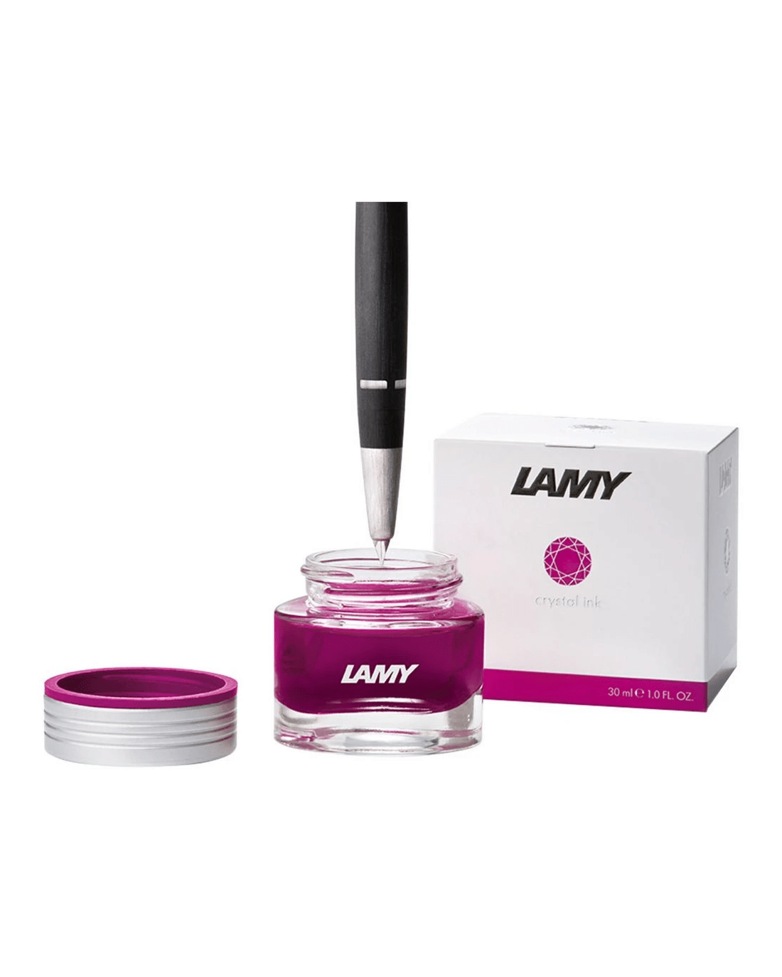 This Lamy Fountain Pen Crystal Ink will bring colour and vibrancy to your writing or artwork. Pair this ink with any fountain pen that uses a conventional piston filling or ink-converter set up to give your writing a whole new dimension. The ink's deep fuchsia hue is inspired by the beryl mineral and comes elegantly presented in a 30ml glass bottle.