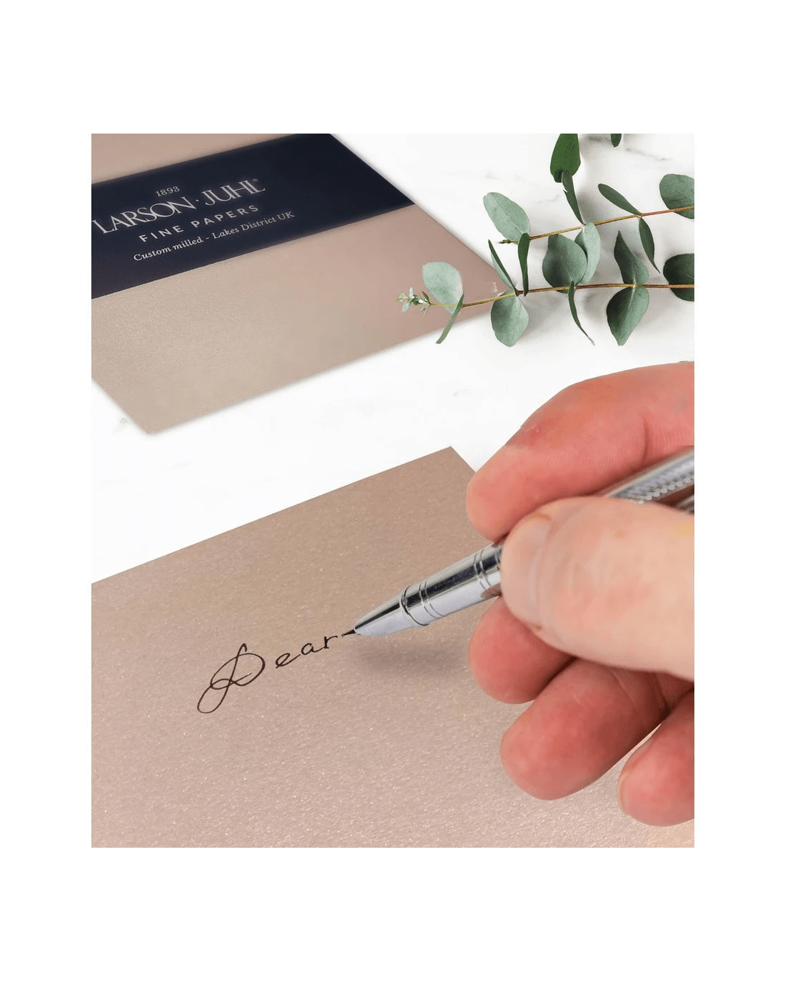 The Larson-Juhl Comet Paper provides a great canvas for your creative ideas. The 200 gsm weight ensures durability, allowing you to jot on both sides of a page. It has a fully-dyed sand tone, with a shimmering pearlescent coating.