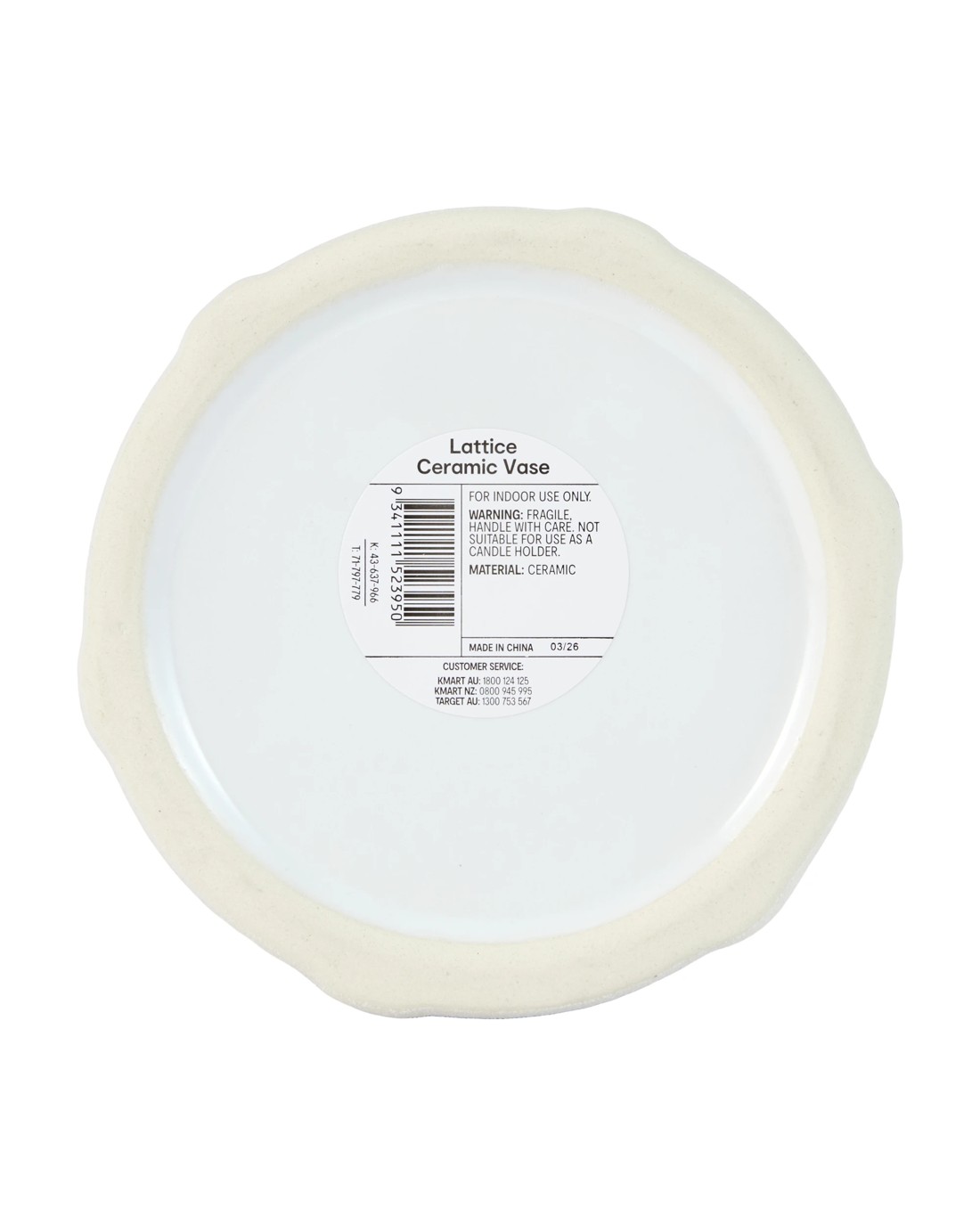 Add artistic charm to your decor with this Lattice Ceramic Vase, featuring a unique textured finish that makes each piece visually distinctive. Perfect for displaying flowers or styling shelves and tables with a modern decorative touch.