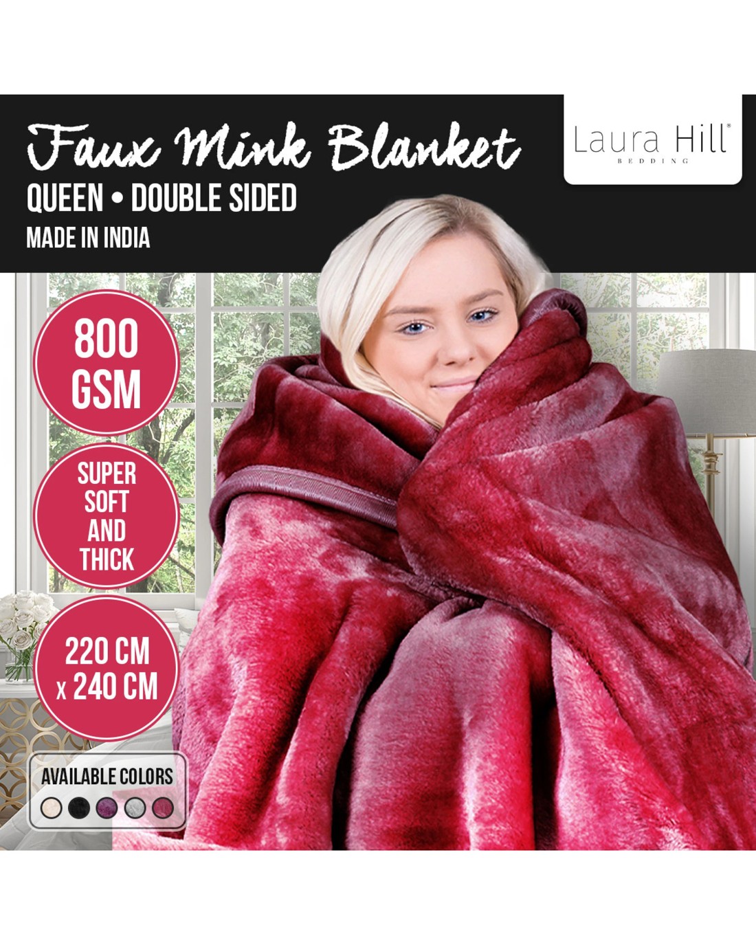 Laura Hill 800-gsm Mink Blanket Queen Size Double-sided Soft Plush Bed Faux Throw Rug Red - Queen Bed