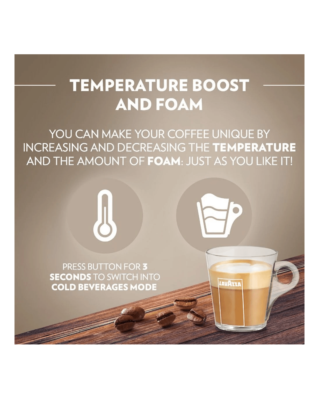 The Lavazza Deséa Coffee Machine is an easy to use, elegant piece to add to your kitchen or tearoom. It features an integrated milk frother and an innovative One Touch Barista interface. You can personalise coffee using the temperature boost button and the milk foam boost so you can make it just how you'd like.