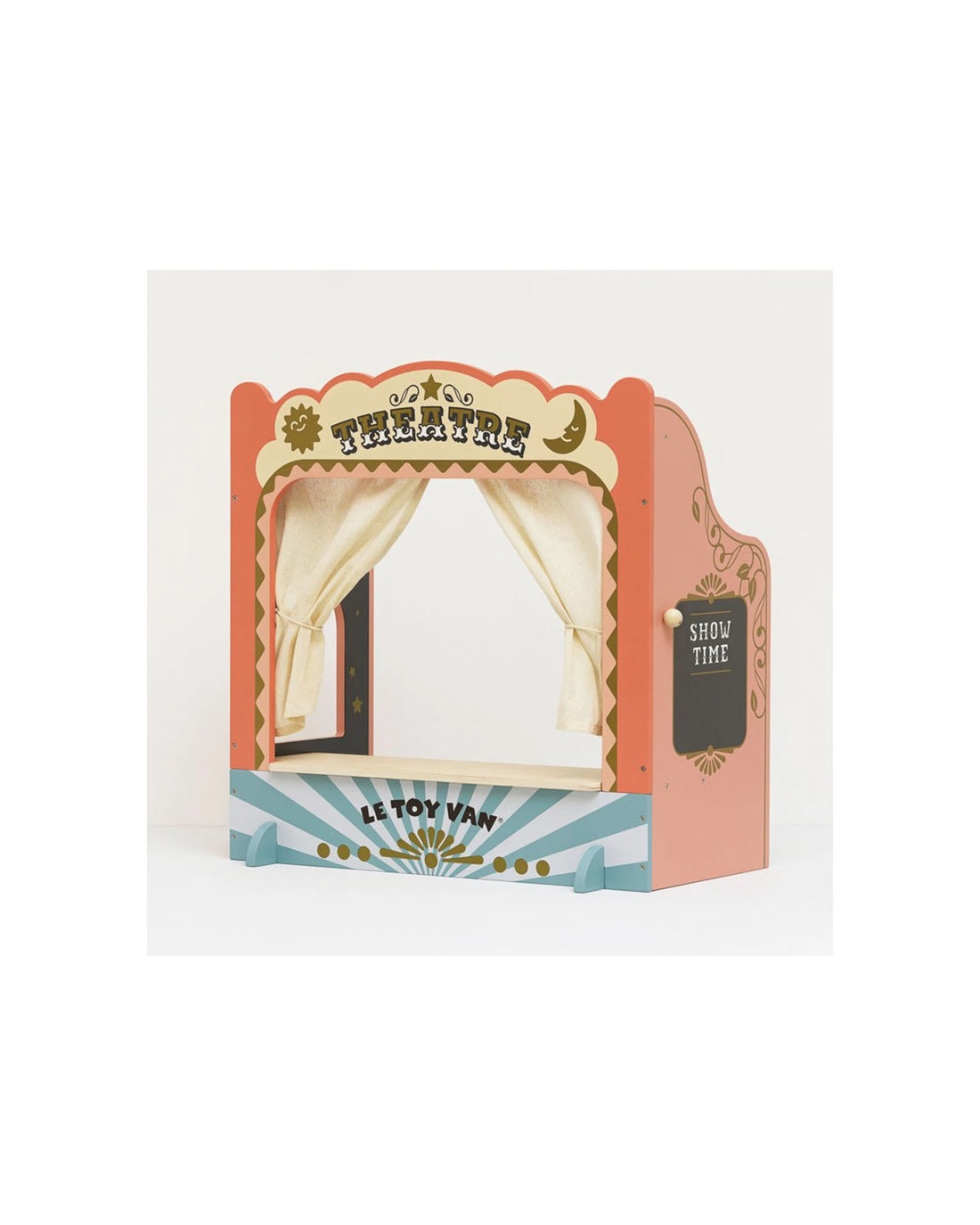 The Le Toy Van Tabletop Puppet Wooden Theatre is designed for children's imaginative and role-playing fun. Perfect for sparking creativity, this theatre offers a charming platform for storytelling and performing arts in any playroom or living space.
