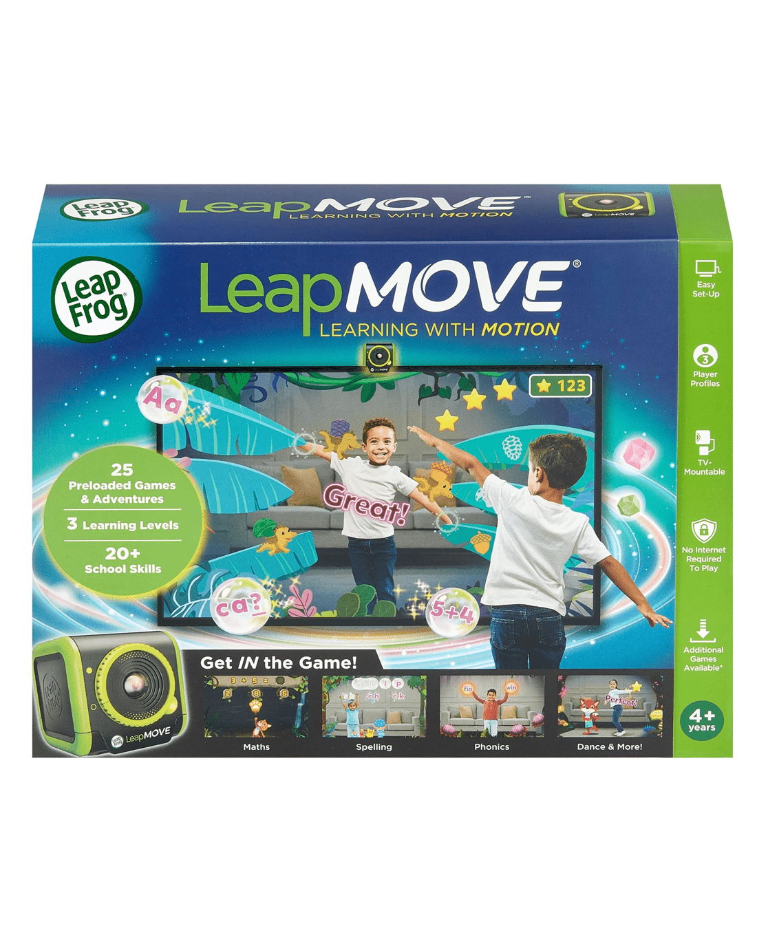 A very small percentage of the public, due to an existing condition, may experience epileptic seizures or momentary loss of consciousness when viewing certain types of flashing colours or patterns, especially on television. While LeapMove® does not contribute to any additional risks, we do recommend that parents supervise their children while they play video games. If your child experiences dizziness, altered vision, disorientation, or convulsions, discontinue use immediately and consult your physician. Please note that focusing on an LCD screen at close range for a prolonged period of time may cause fatigue or discomfort. We recommend that children take a 15-minute break for every hour of play.