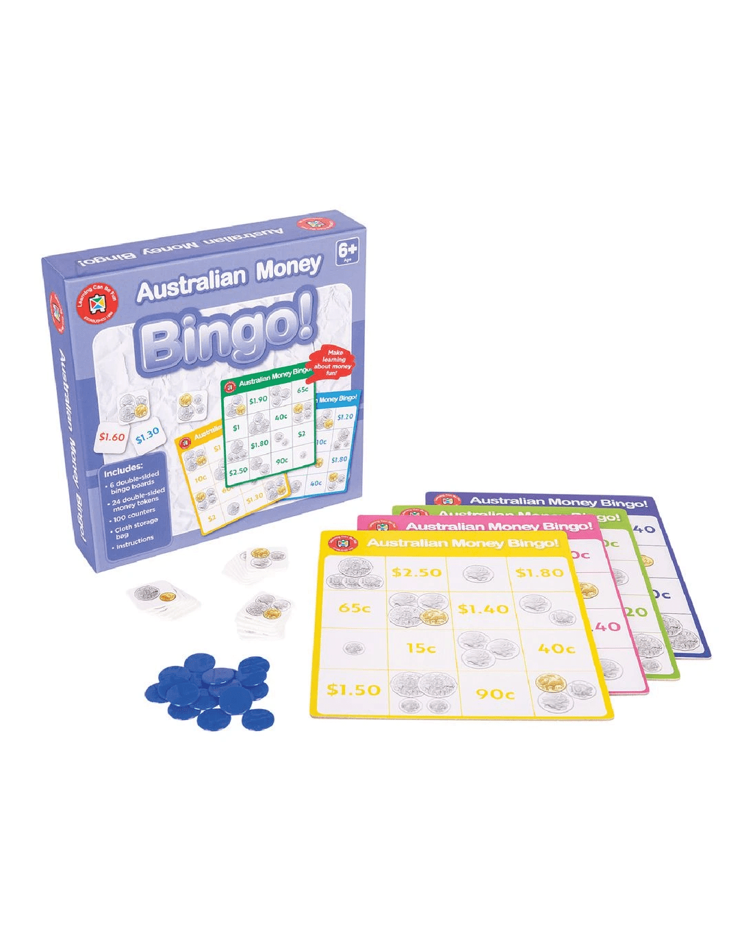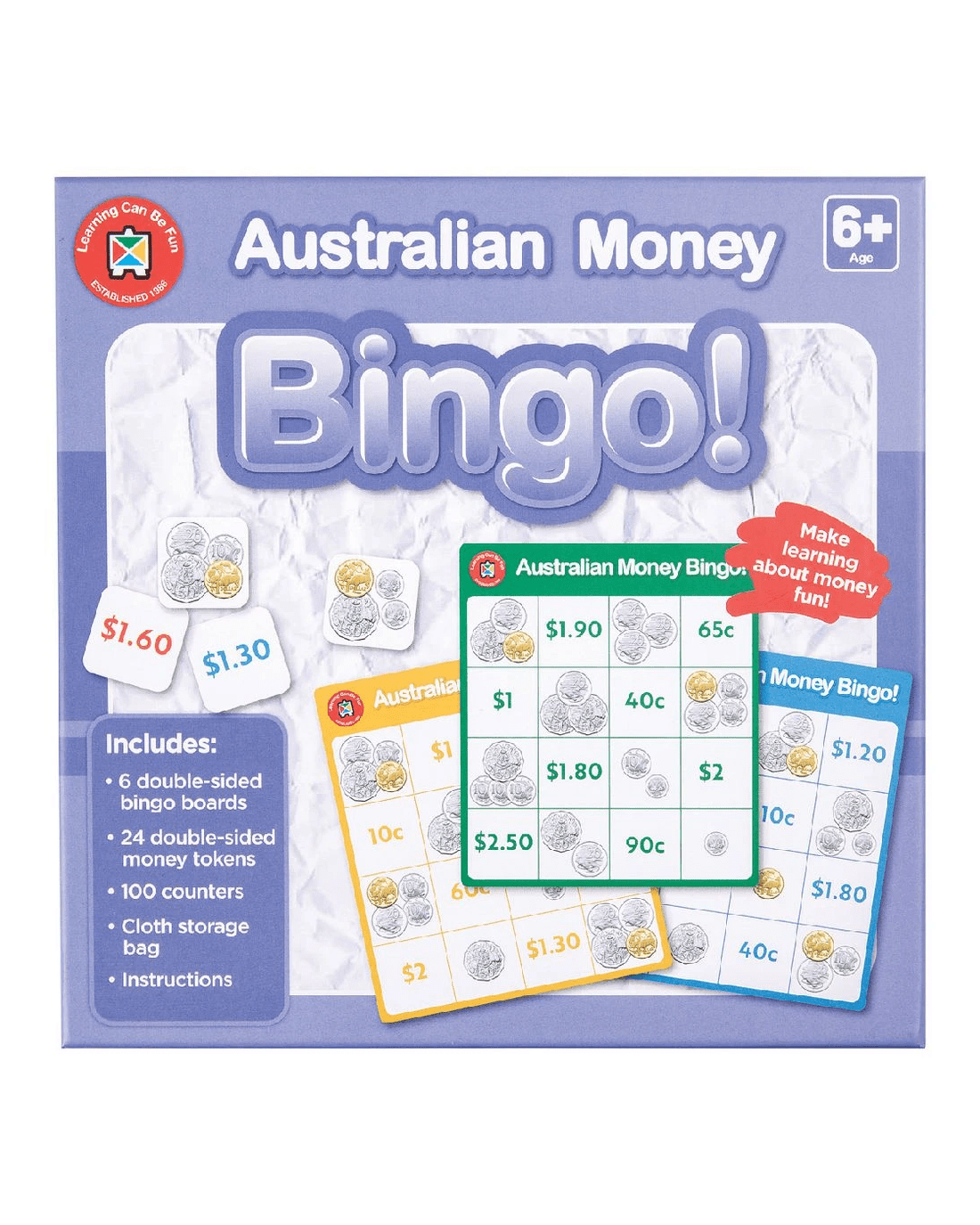 Australian Bingo is played in a similar manner to traditional Bingo. It's a delightful way for children to learn and become confident when interacting with money. The boards contain values represented by actual coin visuals and also numerical amounts adding to the challenge.
