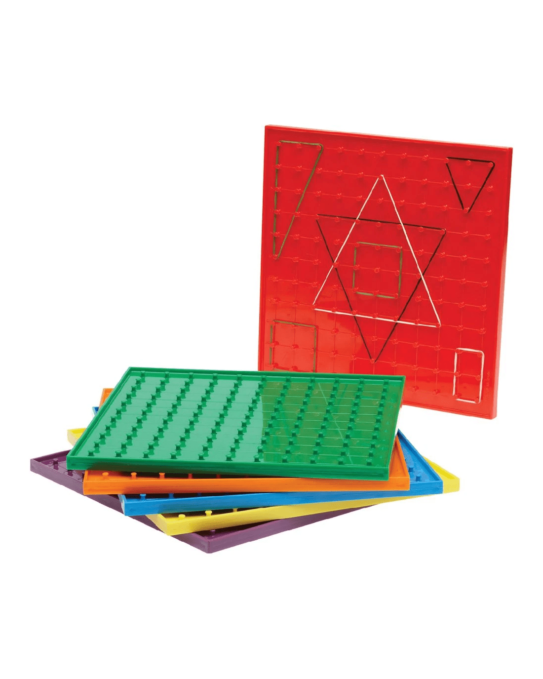 These Learning Can Be Fun Geo Boards are a fun way to learn about shapes and patterns. Each board is colourful and double-sided so you can have fun creating colour coded designs in triangular or square grids. Use the boards with Geo Bands in different colours to practise colour coding.