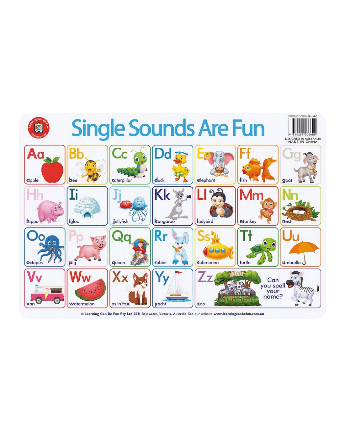 This Learning Can Be Fun Placemat is perfect for learning all about single sounds in a visual way. It has an engaging, full colour design to be fun and engaging for early learners while they develop essential knowledge. The mat's perfect for protecting desks while doing arts and crafts activities or even for use as placemats at dinner time.