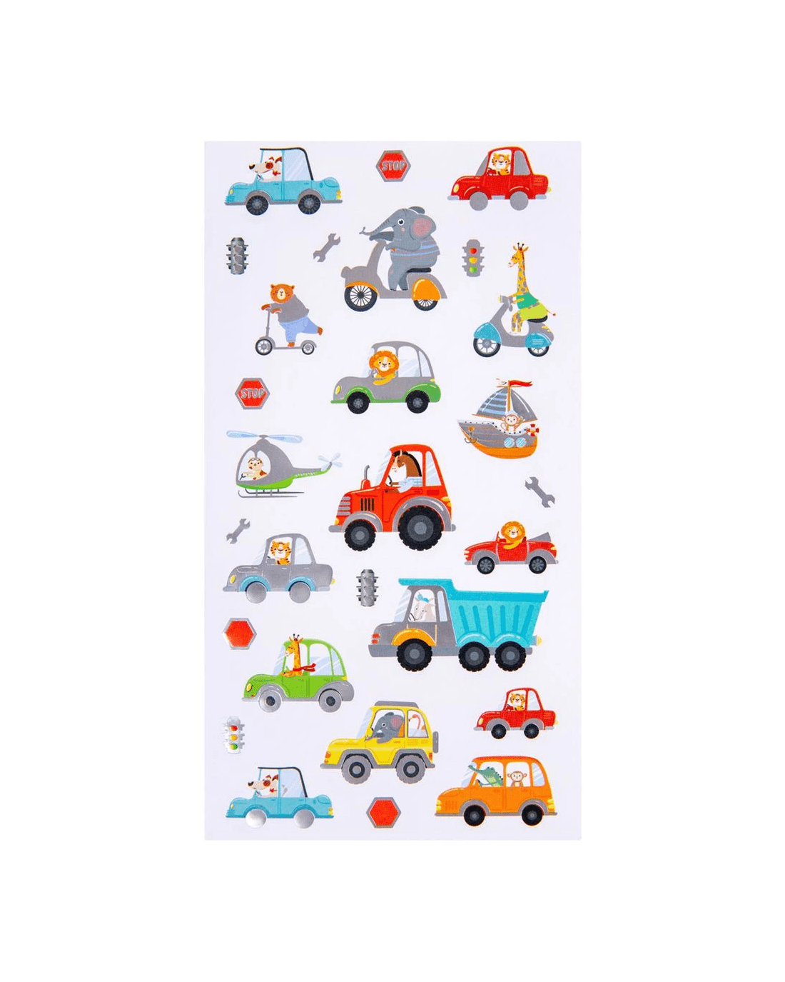 Get ready to roll with the Wheely Fun Pals Foil Sticker Set. This cheerful collection of 28 stickers features animal friends behind the wheel of colourful cars, trucks, tractors, and even boats and helicopters. With shiny foil accents and playful traffic-themed details like stop signs and traffic lights, these stickers are perfect for adding motion and imagination to notebooks, crafts, and sticker scenes. Start your engines, fun is just around the corner.