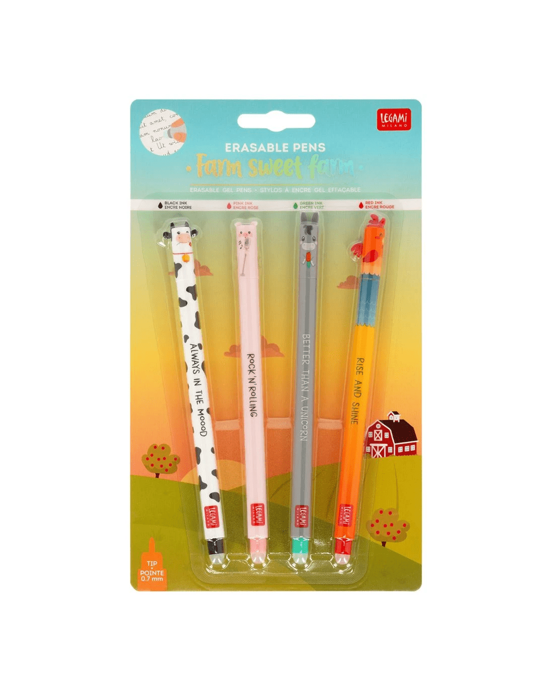 Sold by OfficeworksLegami Erasable Gel Pens Sweet Farm 4 Pack