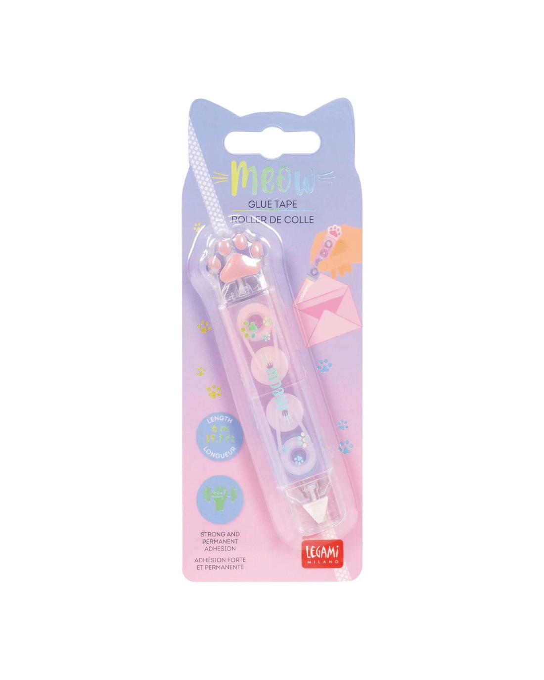 Spend more time crafting and less time grafting with this gorgeous Legami Meow Glue Tape. This stylish accessory contains 3 metres of adhesive tape per side, allowing you to stick pieces of card and paper together quickly and easily. Plus, the clean application has strong and perfect adhesion and is solvent-free.