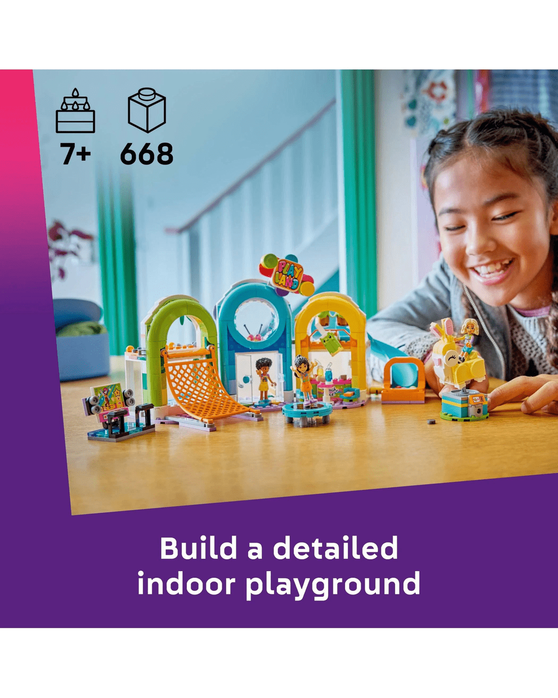 • BUILD AN INDOOR PLAYGROUND – Let kids’ imaginations roam wild as they explore this LEGO® Friends Fun Indoor Playground (42686) set for girls and boys aged 7 and over including 3 minidolls