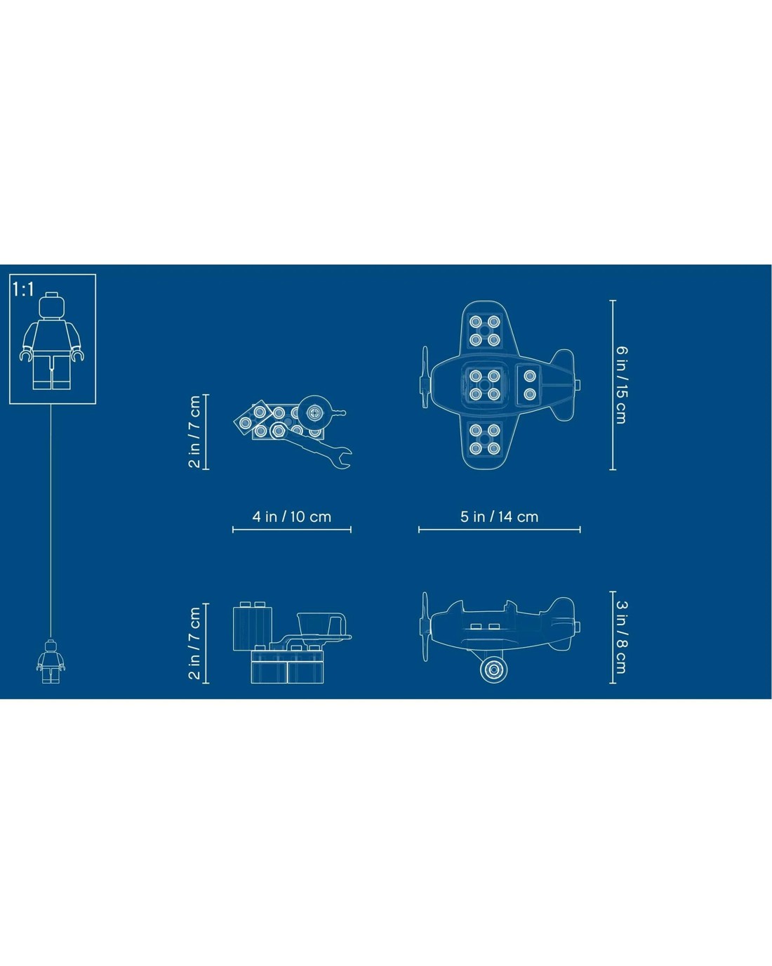Play out real-life scenarios in LEGO(R) DUPLO(R) Town: a recognisable world with modern DUPLO figures. Show your child how to help the pilot fix up the 10908 plane in his workshop, using the toy wrench and oilcan. Toddlers will love to make the cute red toy aeroplane take off and fly it through the air, spinning the propeller as they go! This educational toy includes a pilot DUPLO figure.