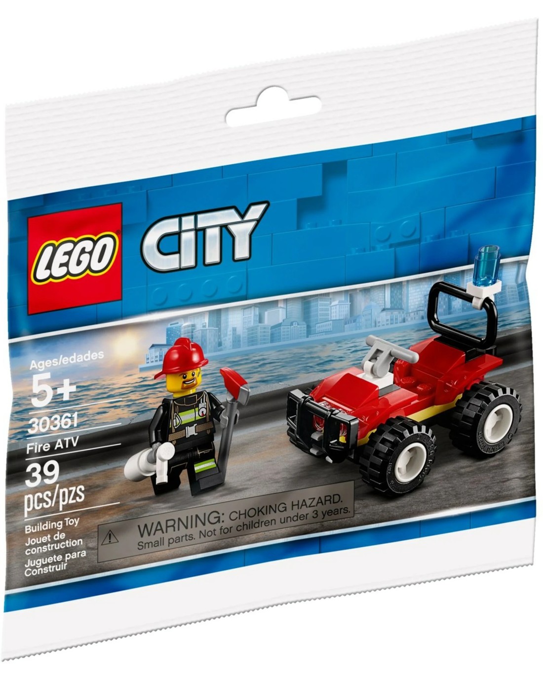 Get ready for emergency rescue action with the LEGO 30361 City Fire ATV! This polybag set features 61 pieces to build a mini all-terrain vehicle (ATV) with a fire extinguisher and other firefighting equipment. The set includes a firefighter minifigure ready to hop onto the ATV and race into action to save the day. This small but exciting set is perfect for LEGO City fans, offering a quick and fun build with an action-packed scenario.
