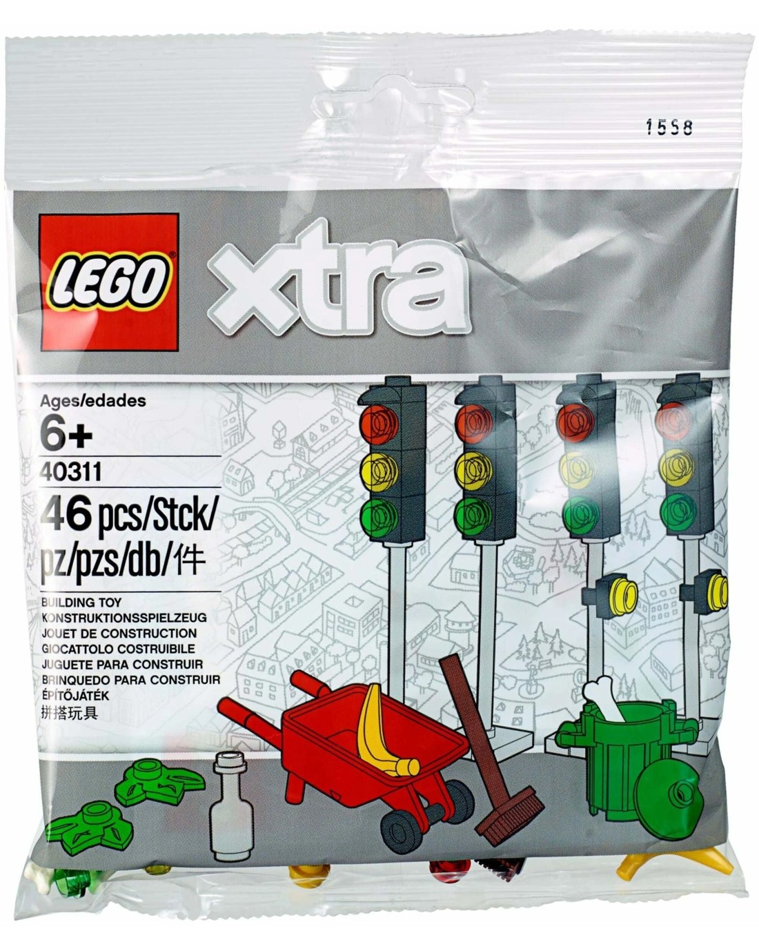 Add some order to your city streets with the awesome LEGO(R) xtra 40311 Traffic Lights pack! This set of items includes 4 buildable traffic lights, plus a wheelbarrow, trash can, broom, and trash elements. Combine and use the LEGO Xtra accessories with all LEGO sets to enhance children's play in any way they can imagine.