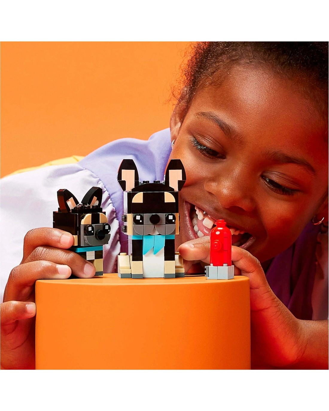 Animal lovers will be excited to build and play with this LEGO(R) BrickHeadzTM French Bulldog (40544). The adorable French Bulldog and puppy models are both wearing supercute blue scarves and sitting next to a buildable red fire hydrant. Kids aged 8 and up can display them in their bedrooms on a baseplate or detach them to play out fun adventures.