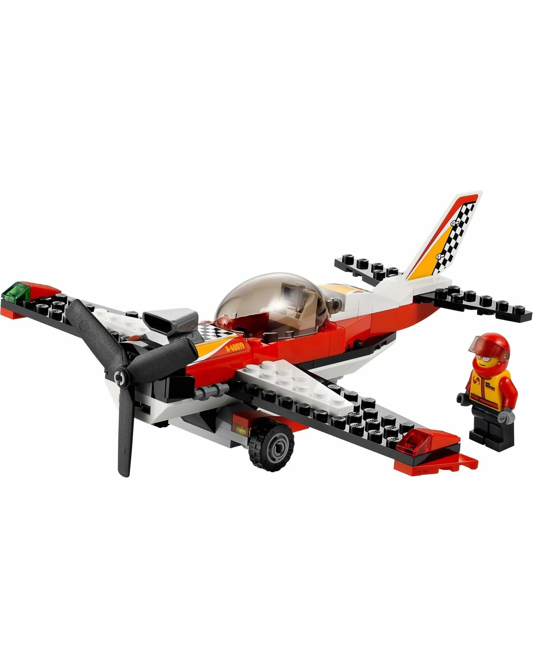 Pull up alongside the sleek Stunt Plane in the OctanTM truck and fuel it up! Put the pilot in place, close the cockpit, and get ready for fast-paced stunts in the skies of LEGO(R) City. Fire up the big engine, spin the propeller, and lift off! Use the tools and fire extinguisher to make repairs and stay safe. Includes 2 minifigures with accessories: a pilot and a driver.