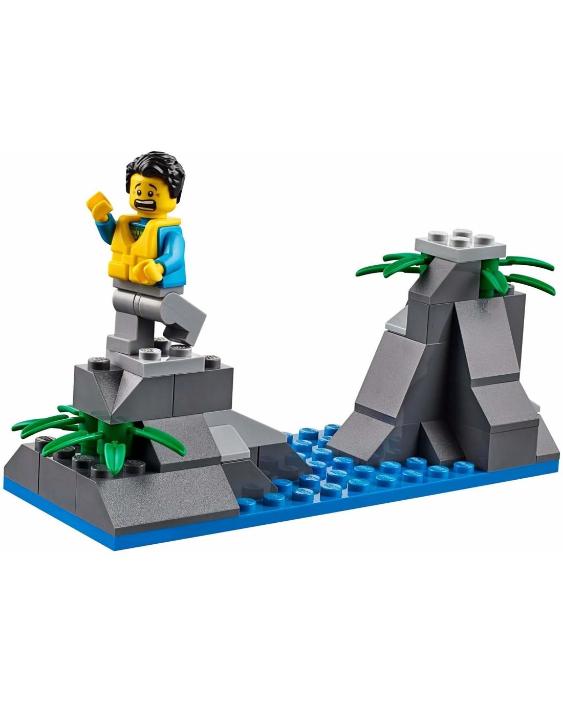 Join the LEGO(R) City coast guard crew and make an exciting sailboat rescue, featuring a rescue craft with drop-down motors and spinning propellers, a sailboat with a working rudder and mast that 'breaks', plus a rock island build. Includes 2 minifigures and a shark figure.