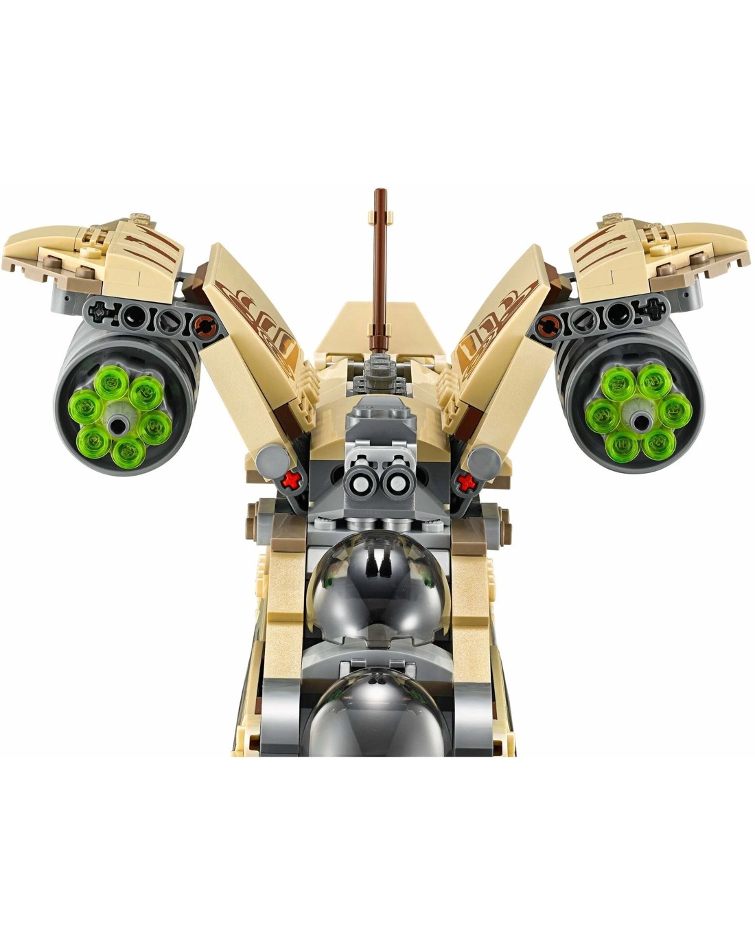 Protect Wullffwarro and his Jedi friend, Kanan Jarrus, with the powerful LEGO(R) Star Wars Wookiee Gunship. As featured in the Star Wars: Rebels animated TV series, this amazing battle-ready craft has loads of weapons to see off any invading force, like movable front cannons and an elevating top cannon. When the action really heats up, raise the wings into attack mode and unleash the never-before-seen rapid shooters! If you run low on ammo, open the side hatches to access the spare supply, then lower the rear bay door and unload the mobile gun post. Includes 4 minifigures with assorted weapons: Wullffwarro, Kanan Jarrus, and 2 Wookiees.