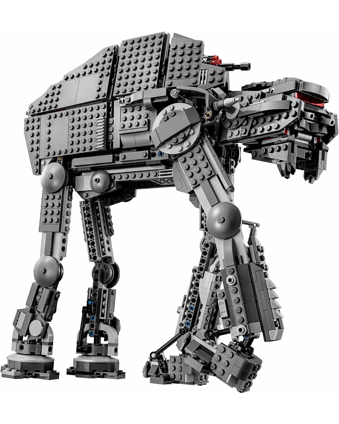 Add a fearsome walker to your LEGO(R) Star Wars First Order army with the Heavy Assault Walker. This awesome model, based on the walker from the blockbuster Star Wars: Episode VIII movie, features tough armour-plate detailing, posable legs, posable head with opening minifigure cockpit and spring-loaded shooters, an aimable rapid-fire stud shooter on top, and detachable canisters that can be released from the rear of the walker. There's also a storage compartment at the side with extra stud ammo and an opening hold to the rear with space for a minifigure and extra missile ammo. This amazing set also includes 5 minifigures.