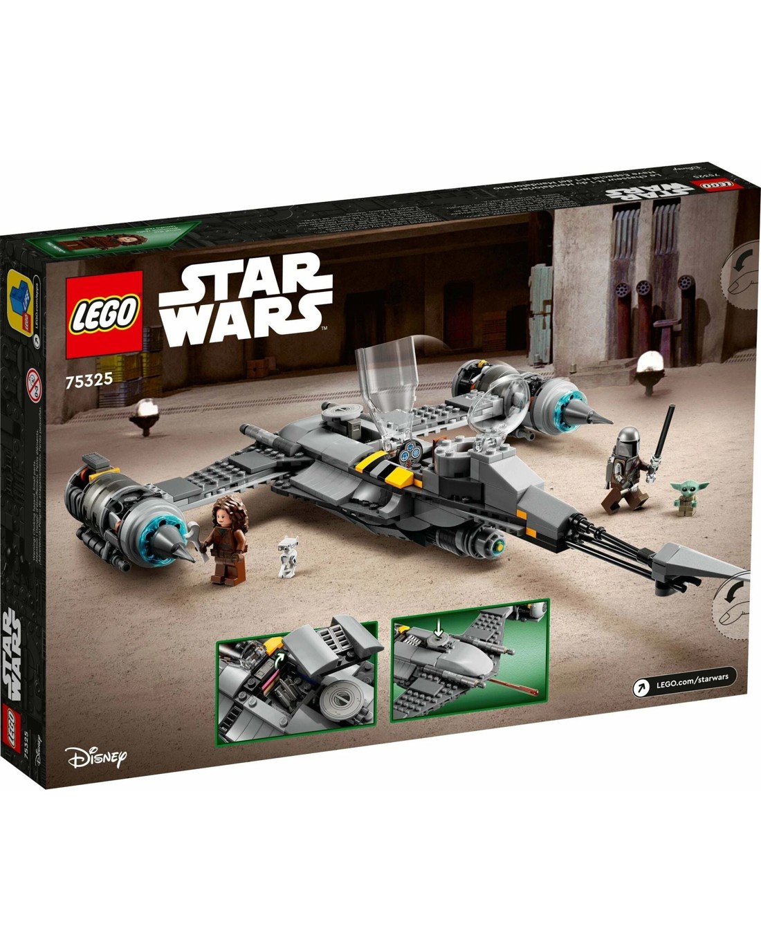 Tatooine tales from Star Wars: The Book of Boba Fett come to life for young builders with this LEGO(R) brick model of The Mandalorian's N-1 Starfighter (75325). It has a miniature cockpit, passenger space for Grogu, a cargo compartment, a spring-loaded shooter, and realistic details. A fun gift for kids aged 9 and up, this building toy features LEGO minifigures of The Mandalorian and Peli Motto, plus LEGO figures of Grogu (affectionately known by fans as 'Baby Yoda') and a BD Droid to inspire creative role play.