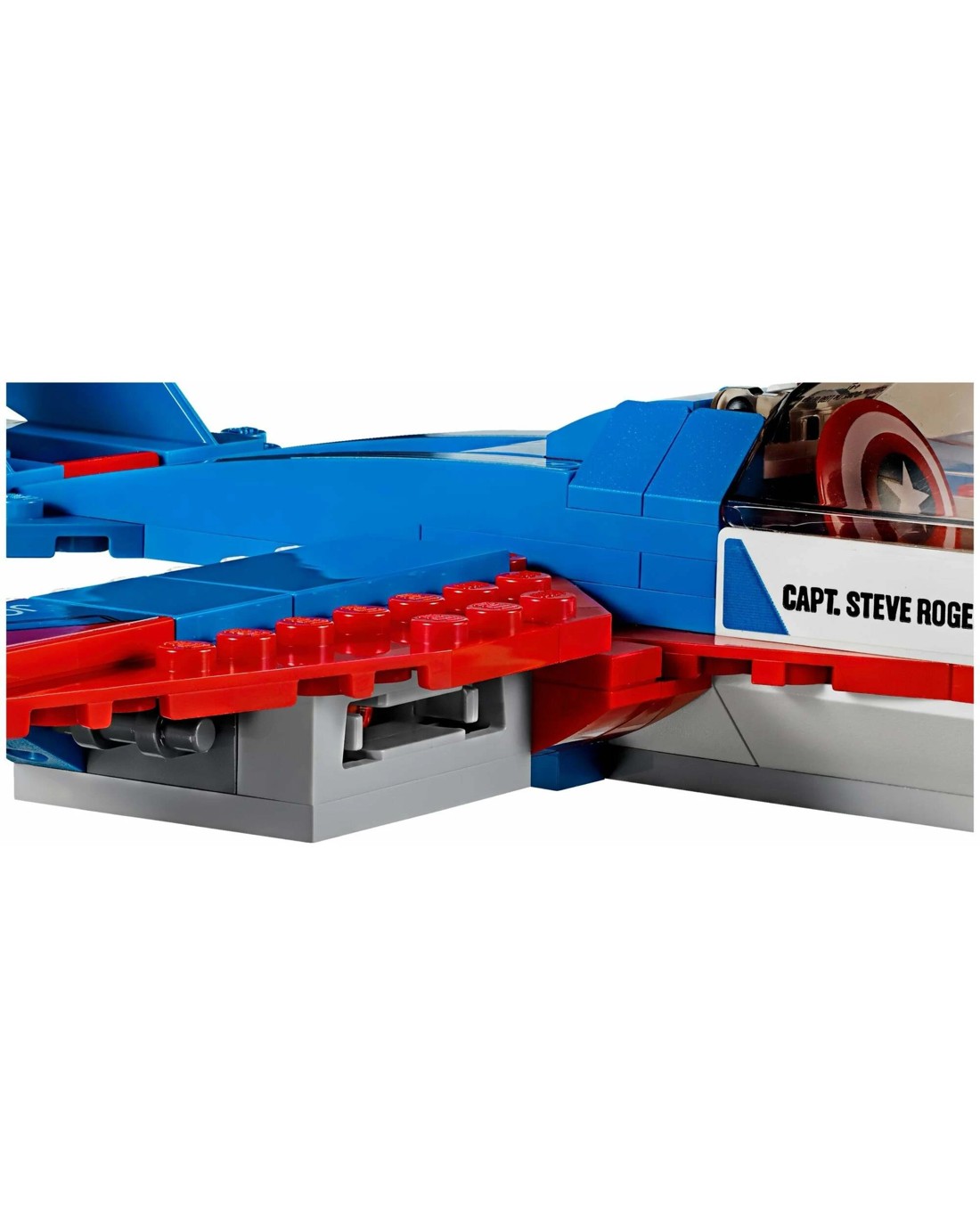 Includes three minifigures: Pilot Captain America, Ms. Marvel, and Super-Adaptoid.