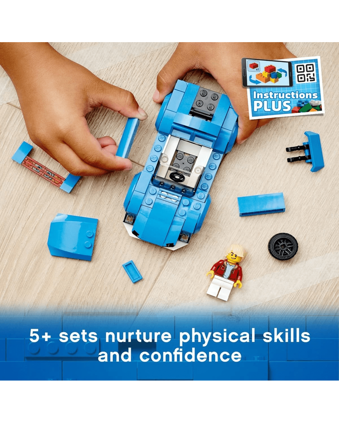 Kids with a passion for cool cars will love the LEGO City Sports Car. This vehicle is bursting with awesome design details, including aerodynamic bodywork, a removable roof for open-top driving, an adjustable rear spoiler, sporty black rims with ground-gripping tires and a detailed cockpit for the minifigure driver. Just add a touch of imagination and head for the highway! A LEGO treat for boys and girls. You'll find building instructions for this LEGO City sports car toy in the box. Or you can download Instructions PLUS, part of the LEGO Building Instructions app for smartphones and tablets. This interactive construction guide, with amazing zoom and rotate viewing tools, quickly turns budding LEGO builders into master builders. The Great Vehicles of LEGO City boys and girls get to explore all kinds of realistic machines and vehicles with LEGO City Great Vehicles playsets, developing physical skills and confidence as they build and play.