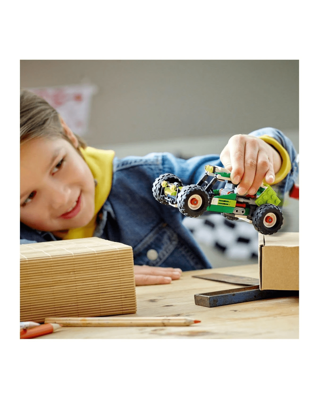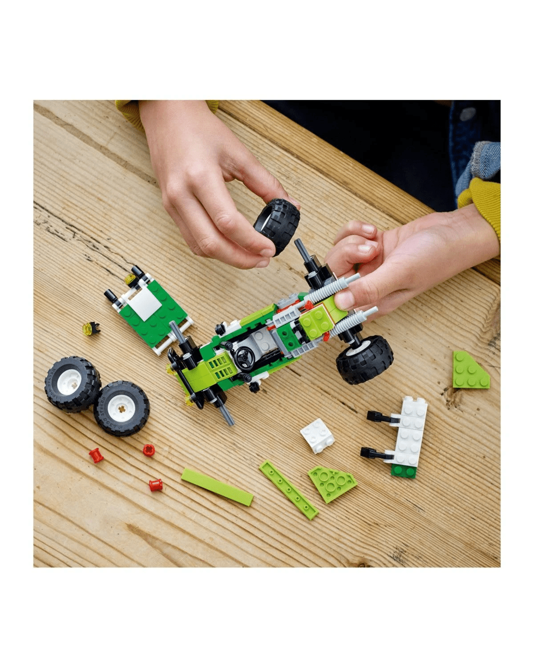 - Nonstop adventures - Kids can stage countless different stories, racing through forests or over sand dunes with the Off-road Buggy and ATV, or lifting heavy items with the skid loader