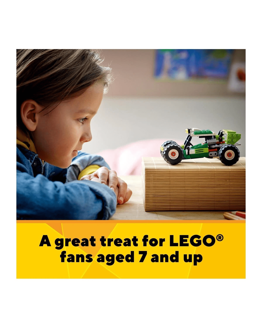 Gripping vehicle adventures await young builders with this fantastic LEGO Creator 3-in-1 Off-road Buggy set. Kids will love playing out race action with the powerful buggy car toy, which has large tires, plus an impressive roll cage, bull bar and spoiler.