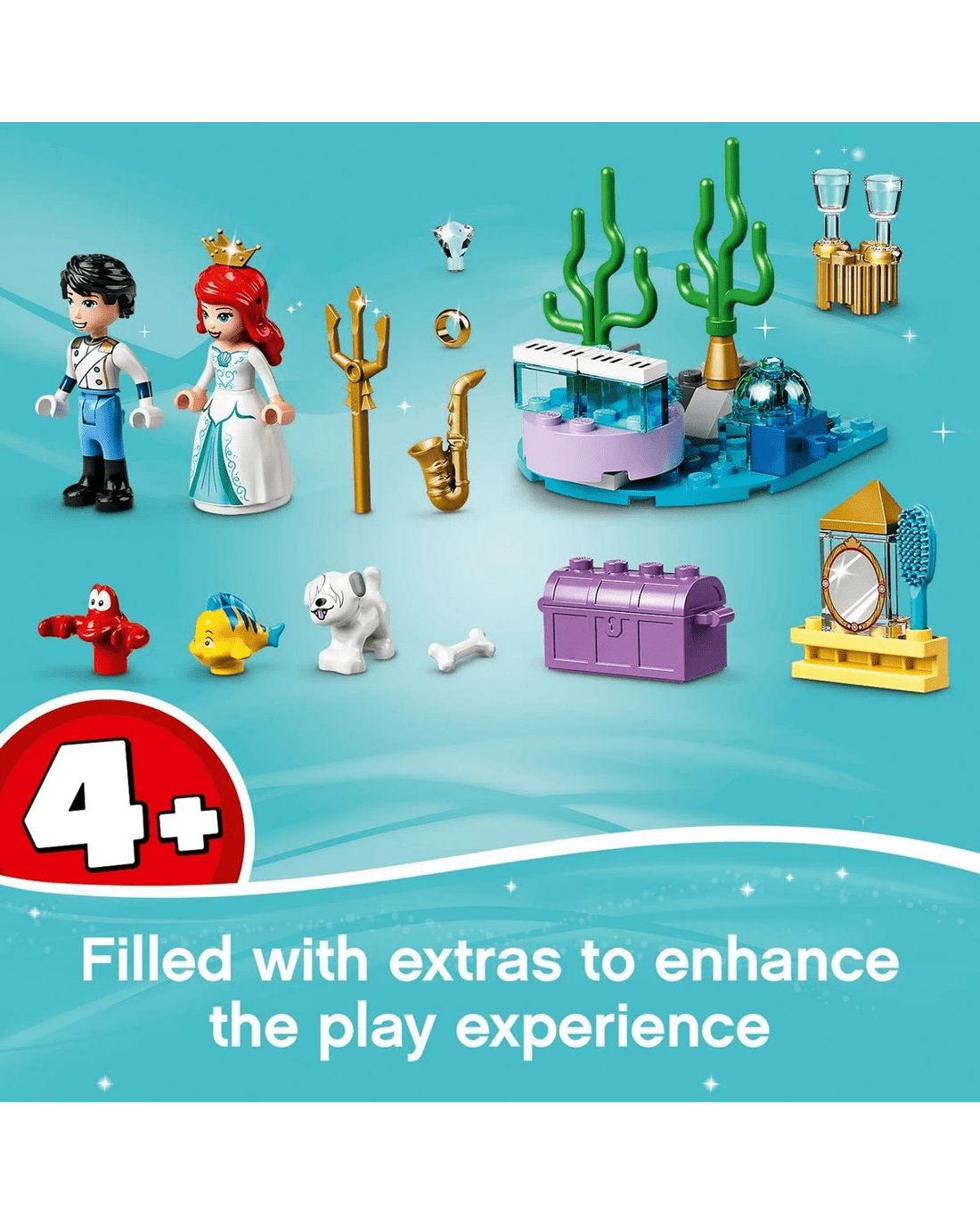 - Disney's The Little Mermaid fans will love the accessories, including a saxophone, bone and a treasure chest with a ring and trident. Perfect for reenacting favourite movie scenes or open-ended play.