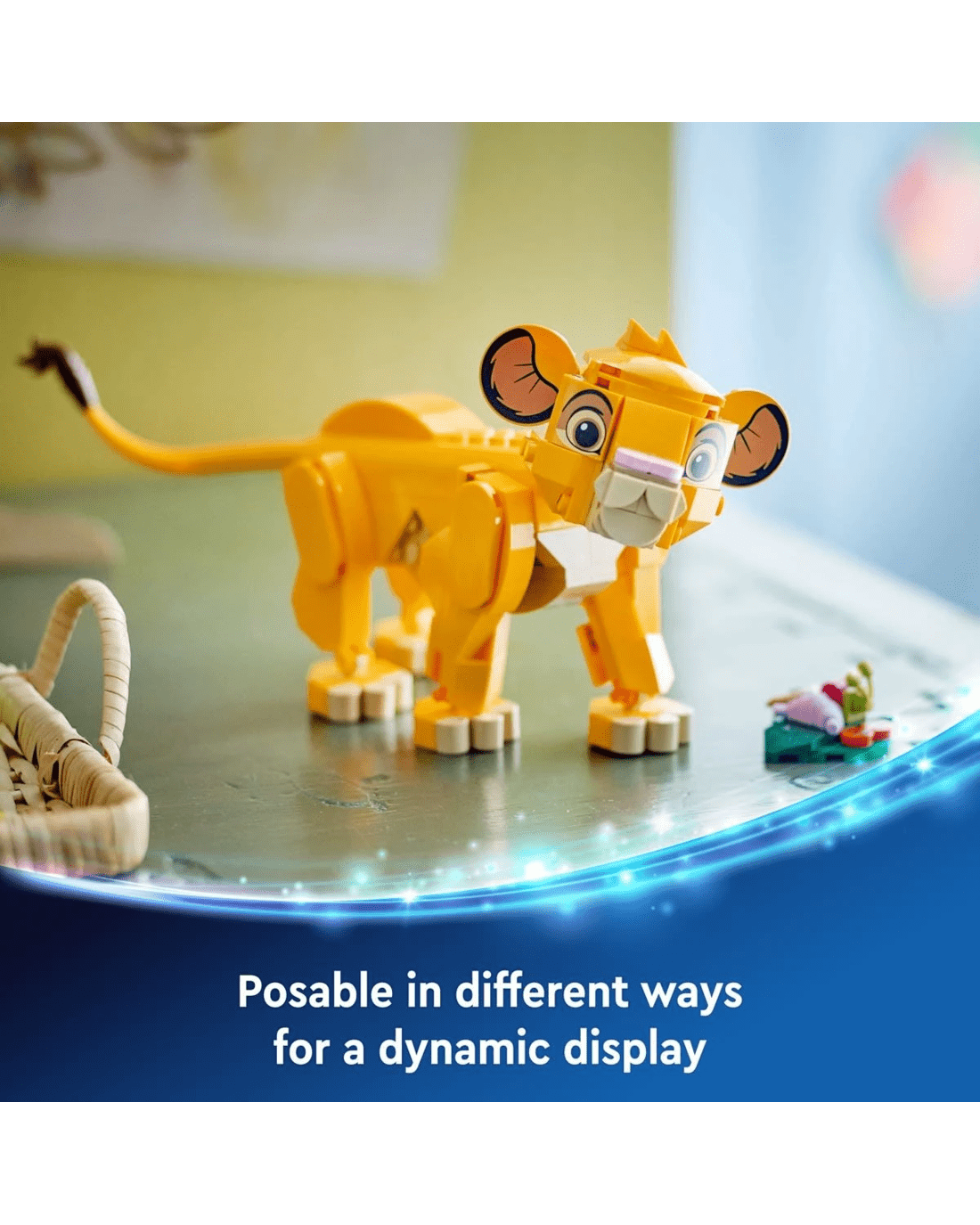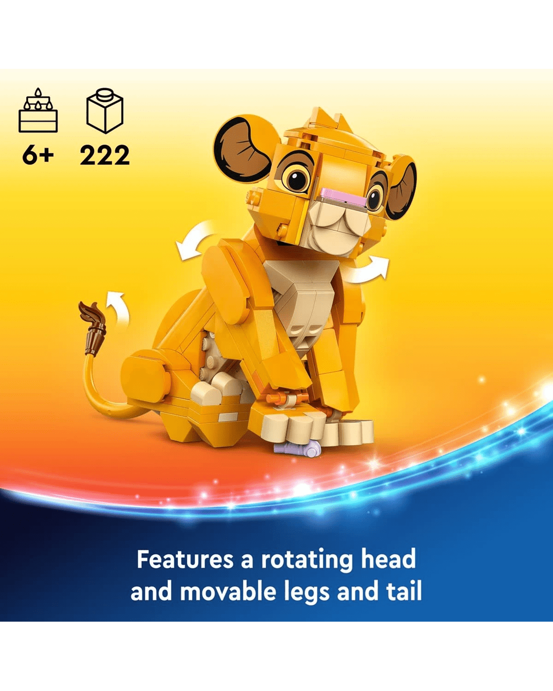 - Moving parts - The buildable toy Simba LEGO Disney animal figure has a rotating head and movable legs and tail and it can be posed either standing up or sitting down
