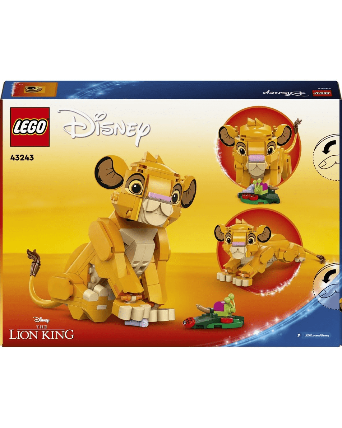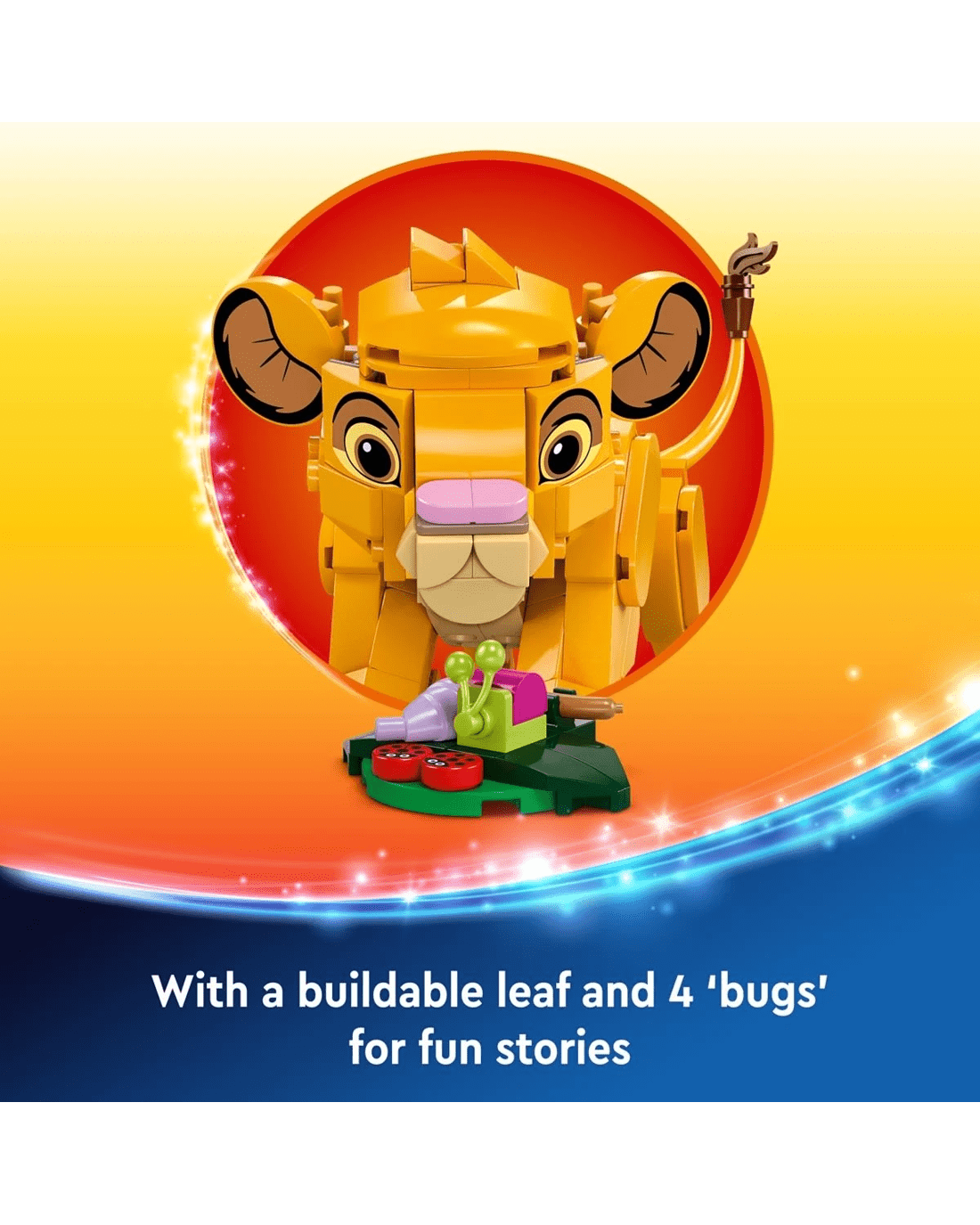 - Celebrate a milestone - This kids' building toy features a Simba LEGO ǀ Disney animal figure from The Lion King, plus a small leaf build with 4 'bugs', to celebrate The Lion King's 30th anniversary