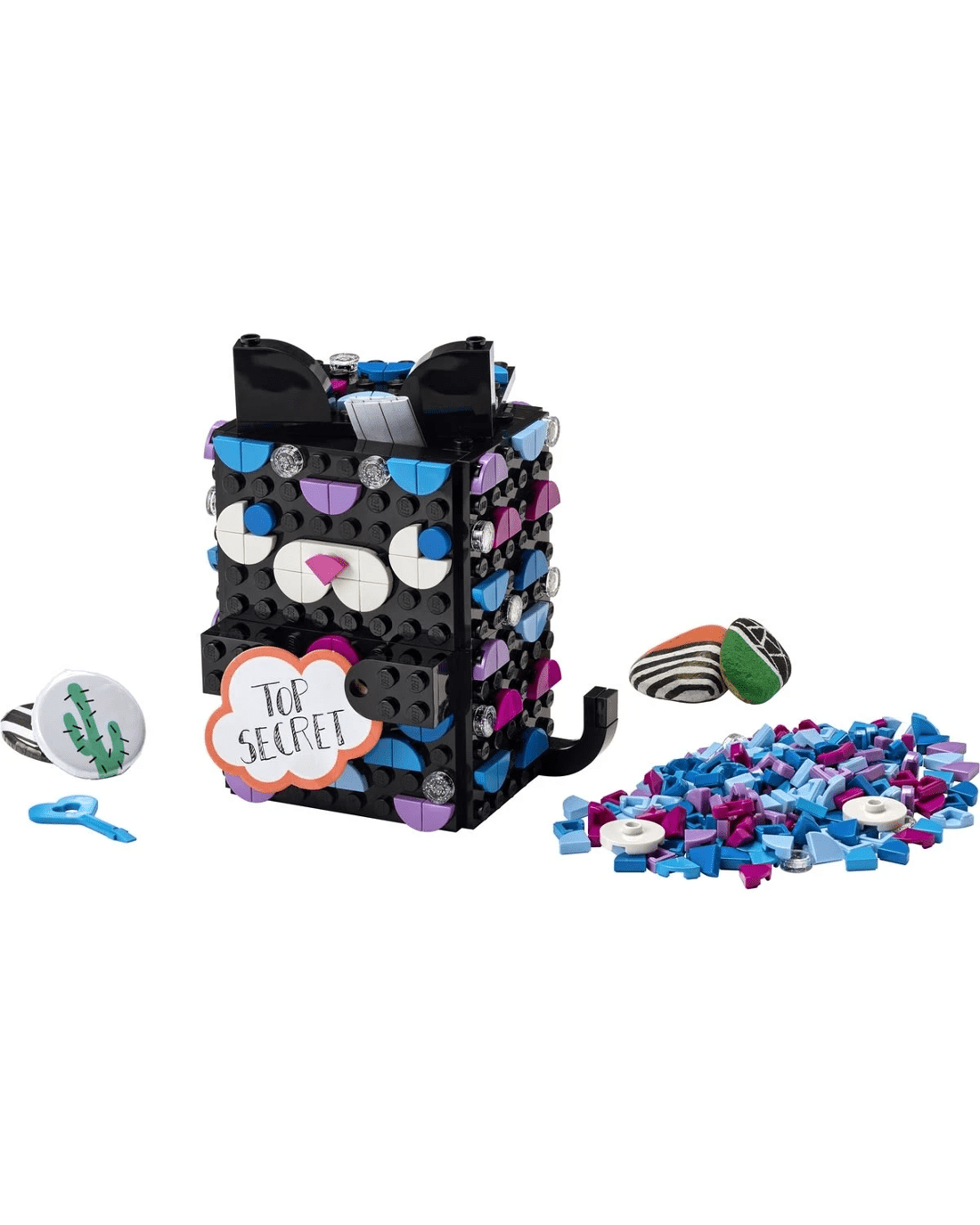 Aspirational arts-and-crafts fun - LEGO DOTS sets encourage free creativity. Kids can hone skills like imaginative thinking and simple problem-solving while they decorate the toy box and then share their designs with friends. This clever kitty secret holder makes a perfect reward for boys and girls.