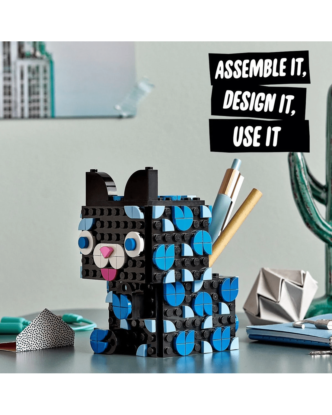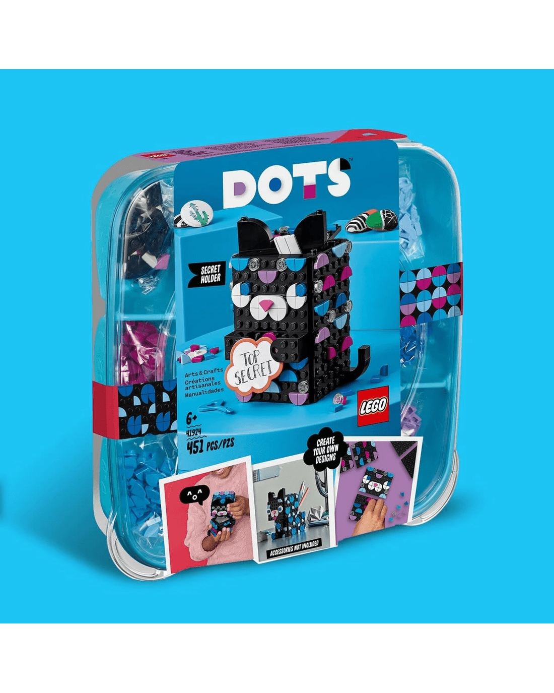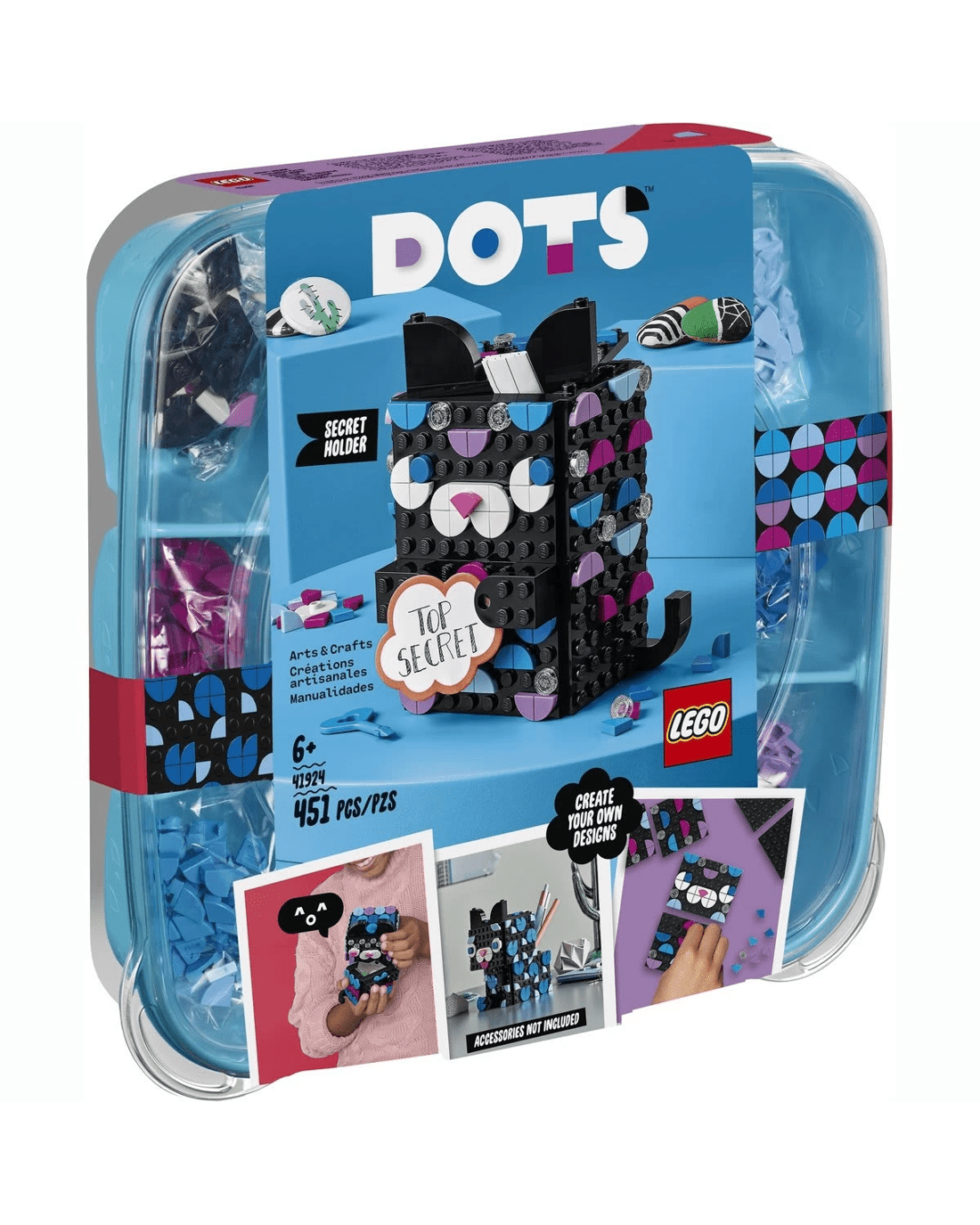 • Give kids appealing crafts to create and use with LEGO DOTS sets. This cool, cat-shaped secret holder offers open-ended design inspiration that helps build children's creativity and confidence.