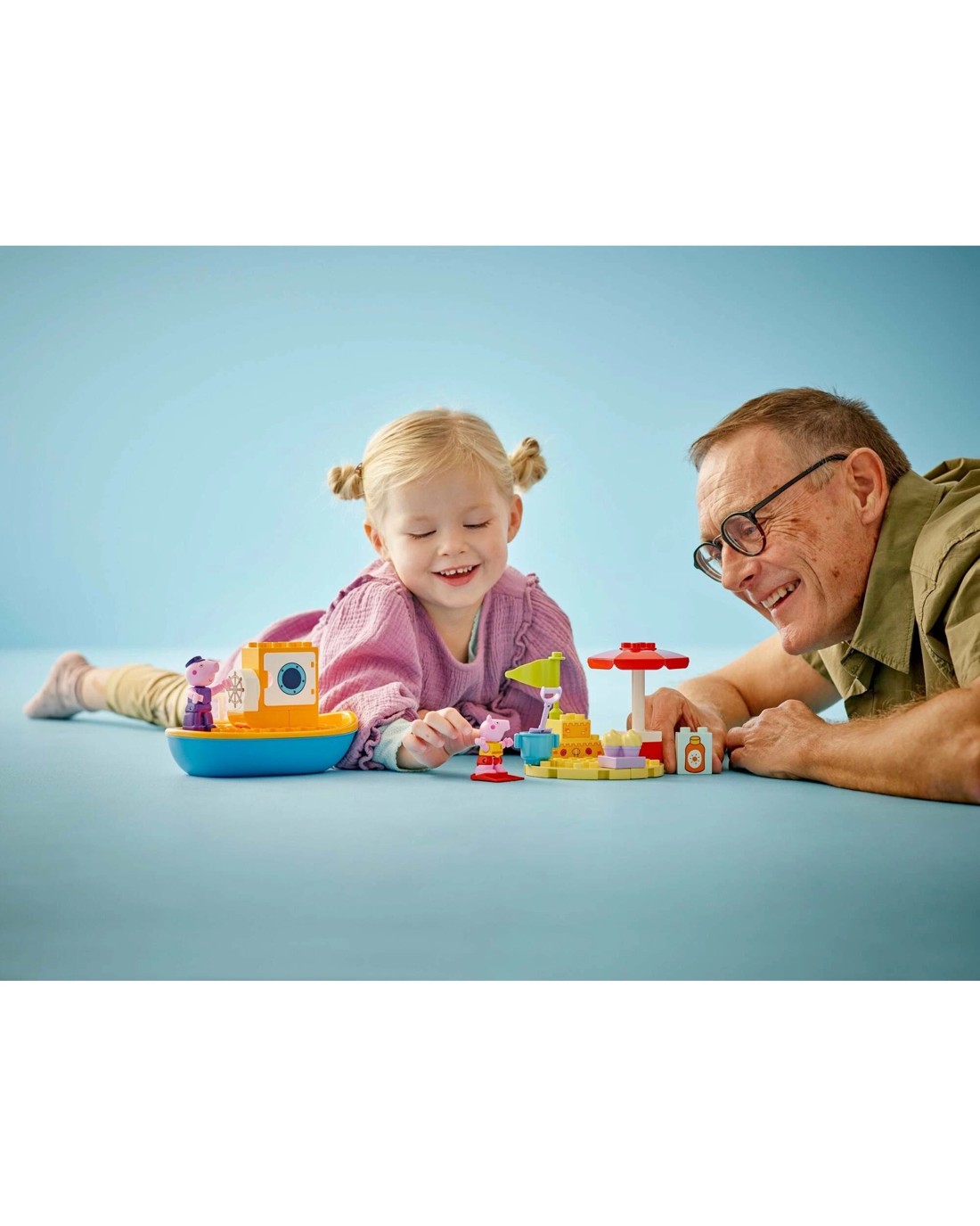 All aboard the LEGO DUPLO Peppa Pig Boat Trip Toy (10432) for hours of joyful preschool learning. Girls and boys aged 2+ join the Grandpa Pig and Peppa Pig figures as they head to the beach with his boat.