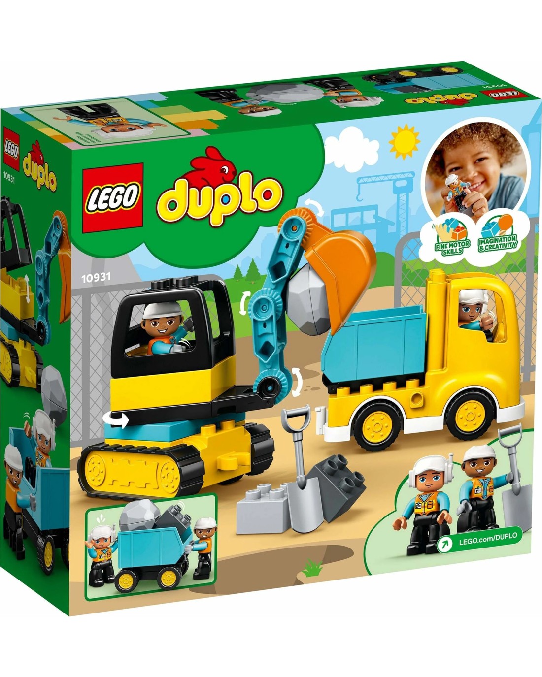 LEGO(R) DUPLO(R) Truck & Tracked Excavator (10931) encourages little builders to explore endless open-ended play. As they act out imaginative construction-site scenes with the toy truck, digger, and 2 construction workers, toddlers develop valuable physical and cognitive skills that last a lifetime.