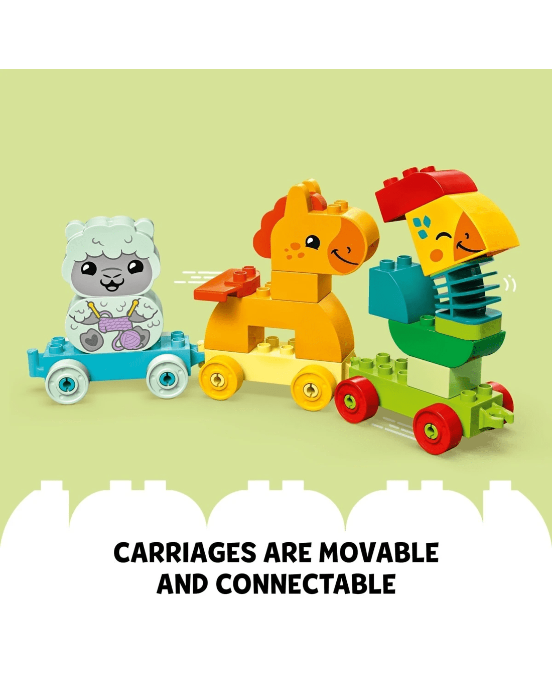 - Animal vehicle toy - This LEGO DUPLO My First Animal Train set for toddlers include 4 buildable animals and 3 detachable carriages for pull-along, creative role-play