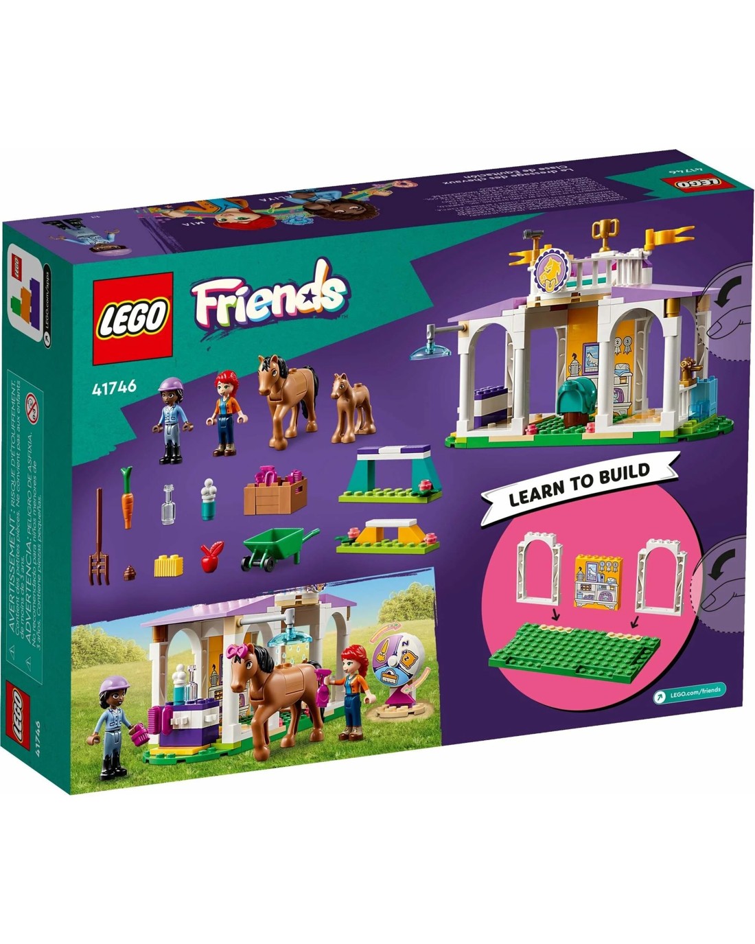Kids aged 4 and up who love horses and animal care can create lots of imaginative stories with this LEGO(R) Friends Horse Training 41746 stable building set. This toy set helps kids learn to build and comes with Aliya and Mia mini-dolls, plus 2 horse characters and accessories for creative play. Kids can explore the relationship between Aliya and her friend's mom, Mia, as the two bond over their shared love of horses.