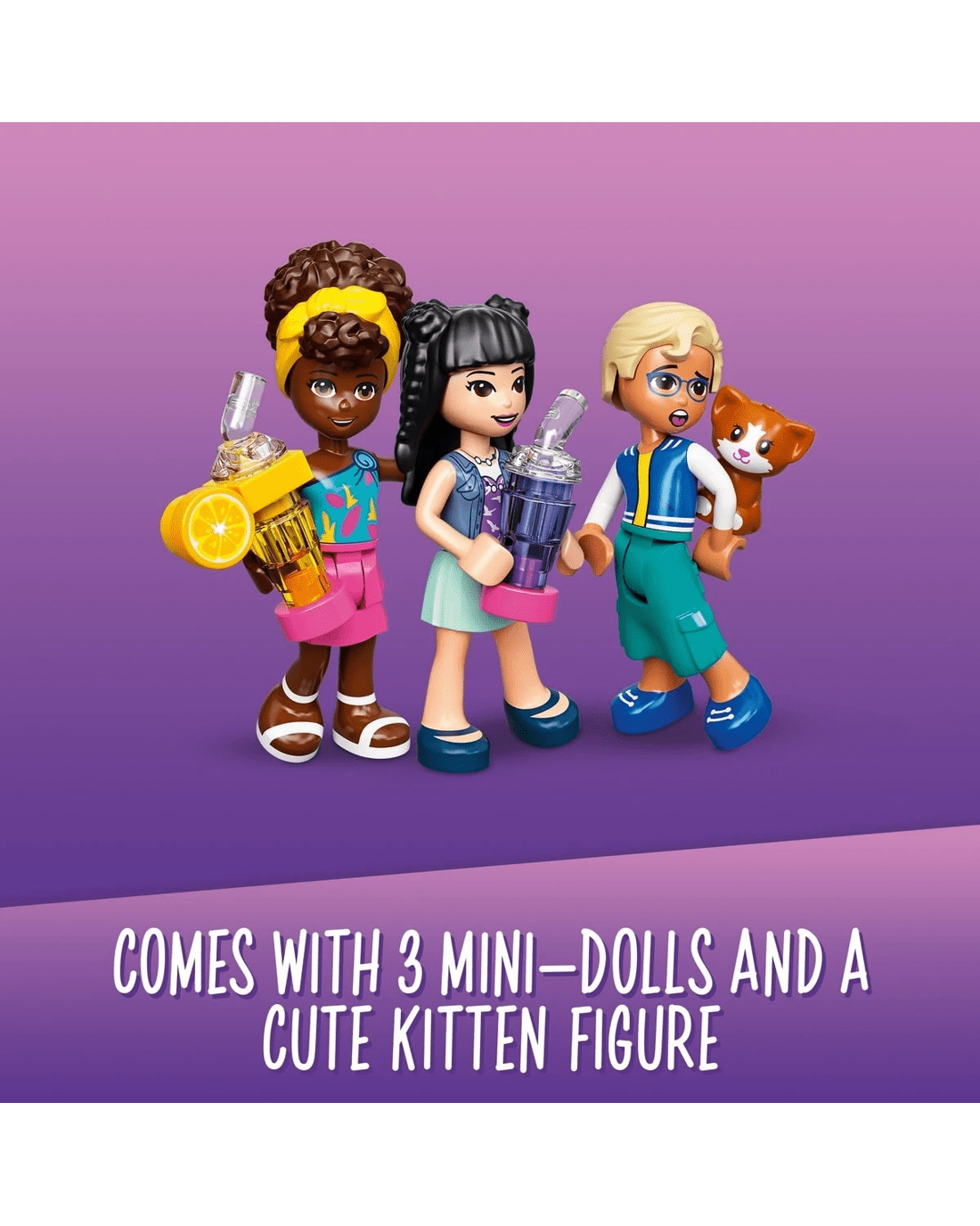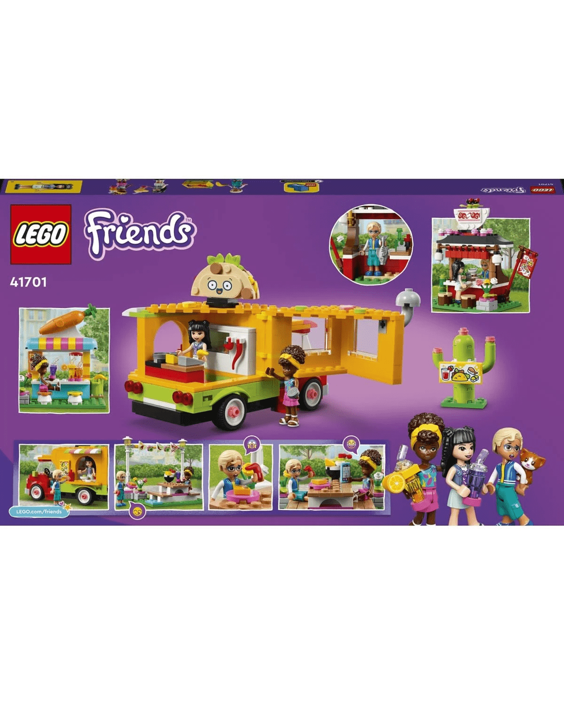 - Packed with fun features - This 592-piece food set comes with 3 mini-dolls, including LEGO Friends Emma, a taco truck, juice bar, sushi stall, dining area, cactus sign and a kitten toy for kids.