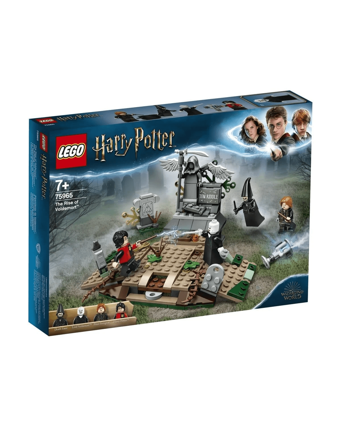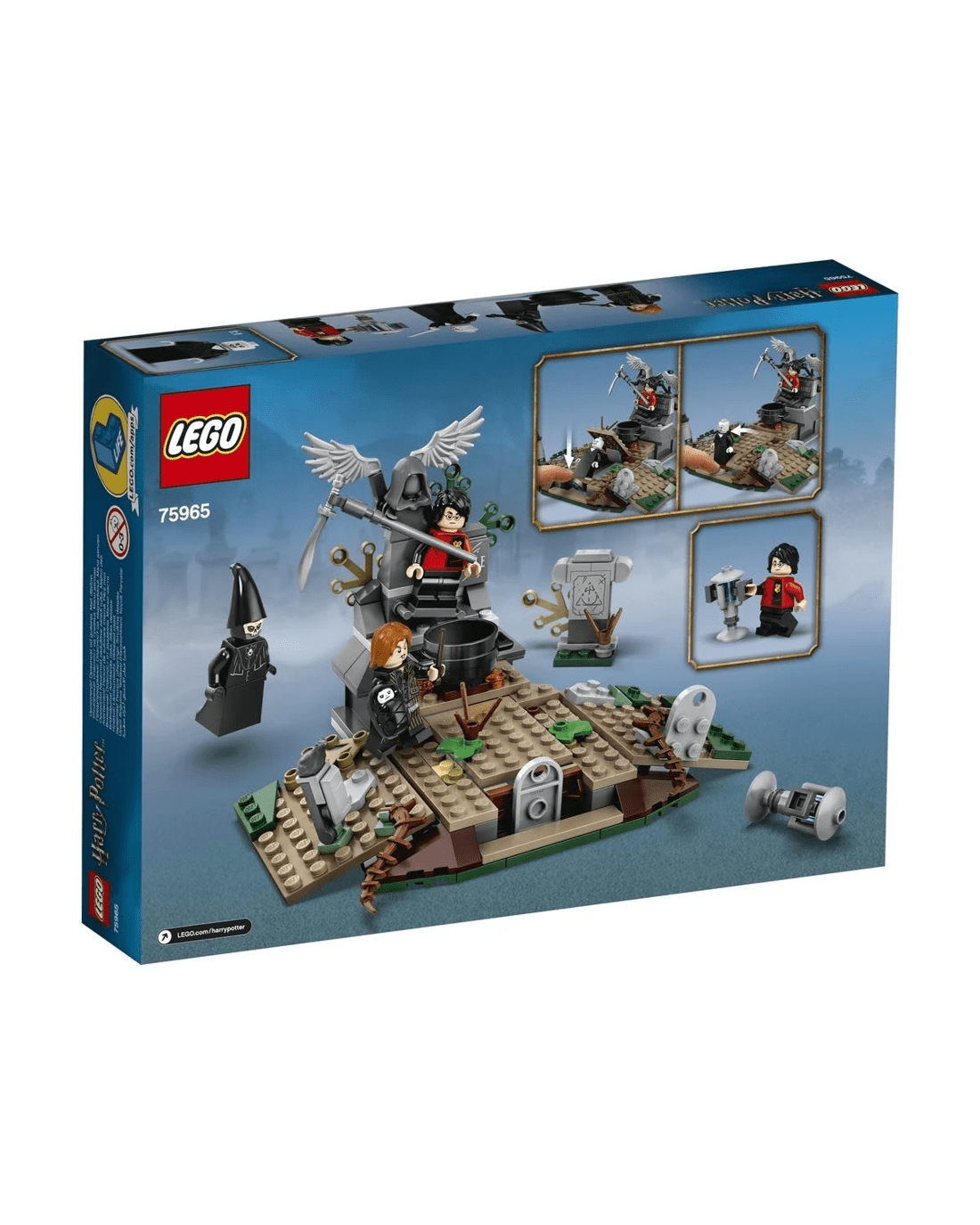 Return Voldemort to his full magical power then help Harry escape his evil clutches! Peter Pettigrew has helped Voldemort transport Harry Potter to a spooky graveyard by using the Triwizard Cup as a port key and trapping him on Tom Riddle's tombstone. Mix together a potion in the cauldron, pull the brick lever and Lord Voldemort instantly appears! Will Harry escape the Dark Lord and his loyal Death Eater? Only you can decide as you recreate this thrilling scene from Harry Potter and the Goblet of Fire.